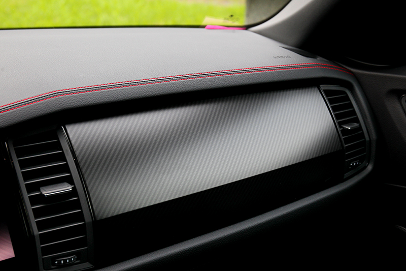 Kodiaq RS車艙利用紅色縫線與飾條強化視覺效果。