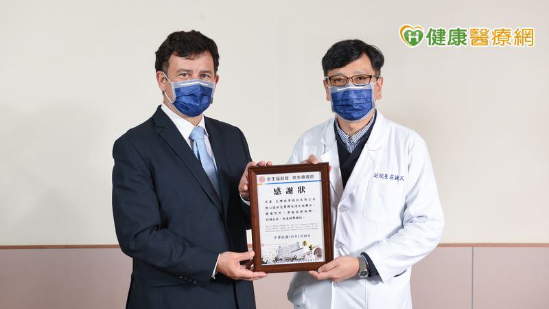 ▲(右)衛生福利部樂生療養院副院長莊毓民,感謝(左)諾華藥廠總裁華格納捐贈漢生病藥品,讓病友能即時獲得治療。
