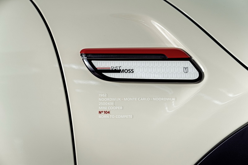 Mini特別選在3/8國際婦女節推出一款以1962年由女駕駛Pat Moss奪下拉力賽冠軍作為發想的Mini Cooper Pat Moss Edition,外觀上的最大特色在於前保桿及輪拱飾板上皆標有車手名字與當年賽程的總里程訊息,以慶祝這位女車手在男性為主的賽事中展露頭角!