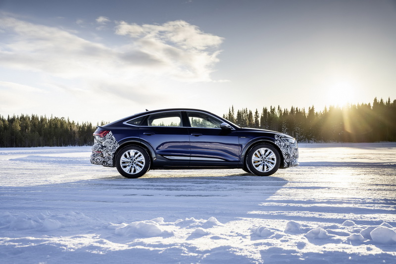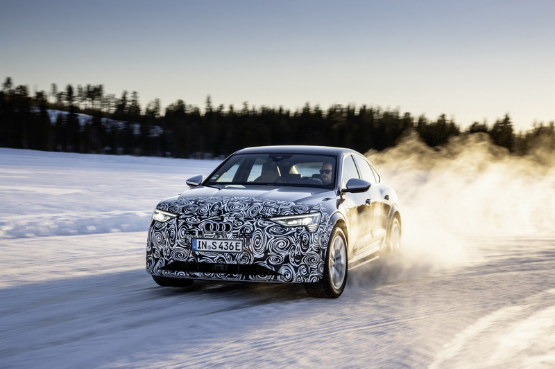 多次被外媒捕捉到測試車的小改款Audi e-Tron Sportback,昨日官方主動公布一系列在雪地環境中的測試照片,從照片可看出外觀在頭尾部分仍貼著偽裝貼紙,但燈具造型似乎變動不大,最有可能變動的部分在於保桿與輪圈造型上,小改款的主要升級項目在於換上新的電池模組,使得總行駛里程由原本的400公里增加至600公里,至於內裝有無配備的更動目前仍尚未得知,預計新車將在未來幾個月內發表,最快則會在年底前上市。