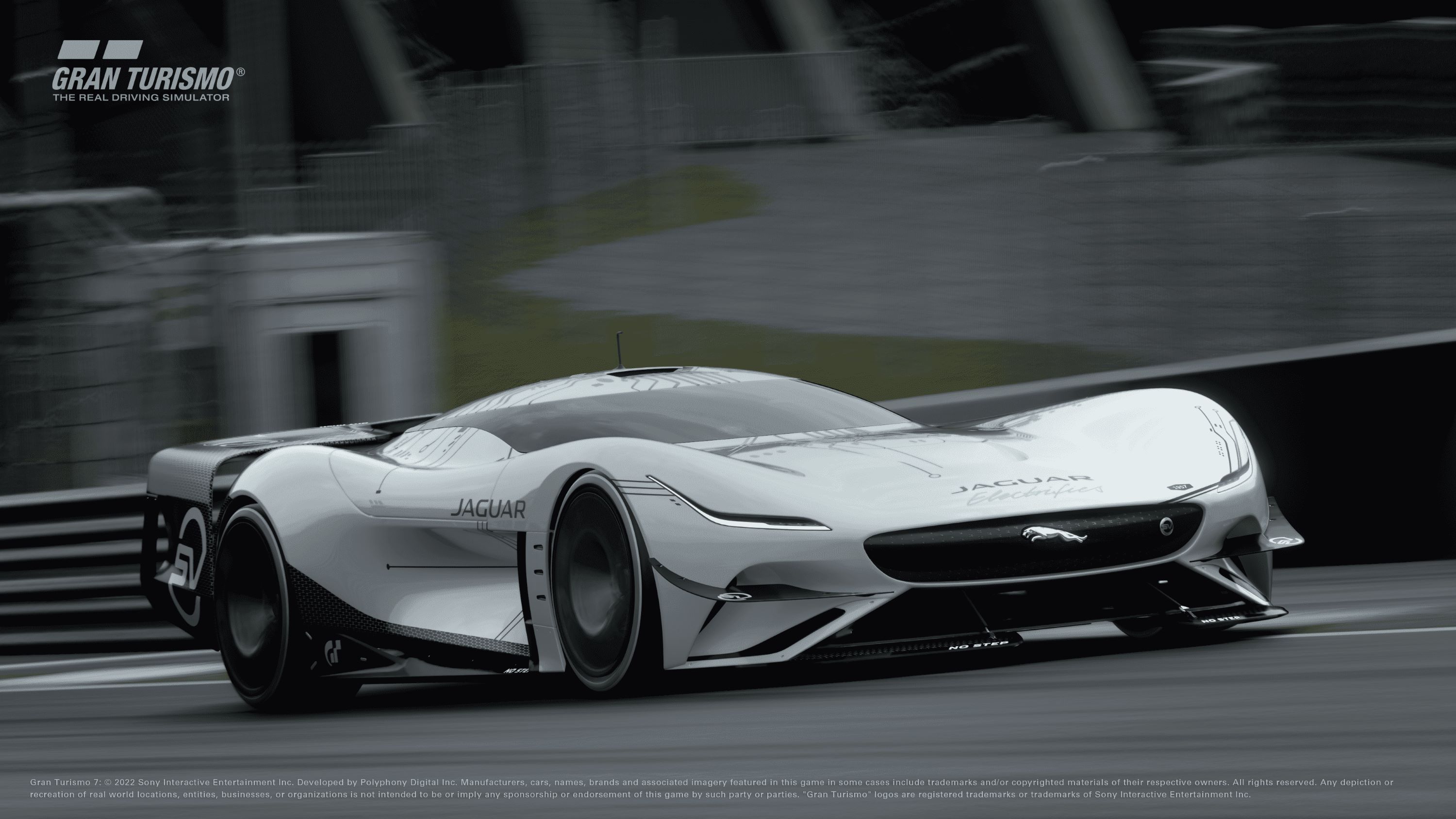 註1 : 為表彰 Jaguar 在 Vision GT 系列中的三個版本,Jaguar 的設計團隊為每輛車款開發了新的 Bespoke 塗裝。這些塗裝並沒有在 GT7 中。新塗裝採用特別開發的黑色和灰色車漆與巧妙的圖形強化了車款固有的戲劇性和美麗的設計,在 GT7 中,玩家可以使用塗裝編輯器功能重新創建這些新塗裝。