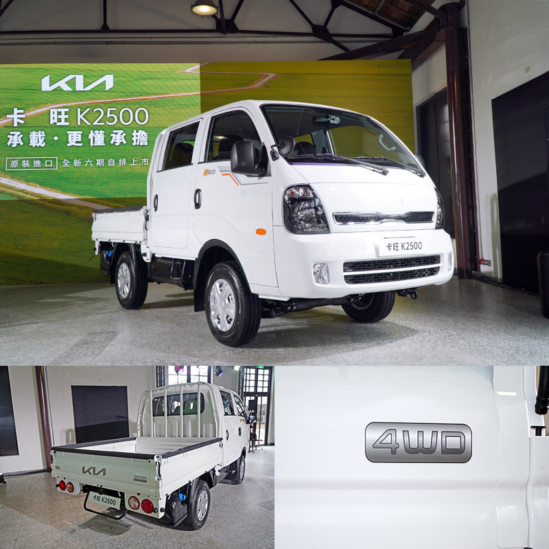 Kia中型商用車卡旺K2500,延續2021年創下近1,500張訂單的銷售成績,台灣森那美起亞導入符合全新六期法規的卡旺K2500,以「尚能載、尚安全、純進口」三大產品DNA所打造,全車系包含齊全的單廂、大單廂及雙廂3種車型,配合手排及手自排2種選擇,並提供二輪及同級唯一四輪傳動系統(註1)的完整車型編成,滿足全台百工百業頭家各式各樣不同的需求。「承載‧更懂承擔」,擁有強大乘載能力的卡旺K2500與所有頭家一起攜手打拼,承擔更多甜蜜的責任、也承擔更多幸福的未來。