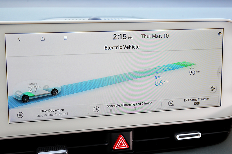 Ioniq 5可支援400V/800V輸入電壓及可相容350kW超高速充電樁,5分鐘補充超過110km續航里程,18分鐘內即可補充10%~80%電量。