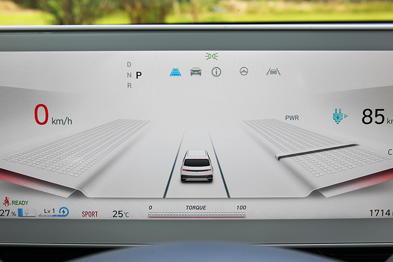 RSPA智能遙控停車於狹載區相當實用。 再來就是大家最好奇的動態表現,試駕車型為Ioniq 5 EV500 Performance,搭載72.6kWh電池不僅具有496公里續航里程,也俱備306hp/61.9kgm最大動力輸出,由於電動車有著直接全數供給能量的特性,但這部分就不得不讚賞傳統車廠的設定,縱使擁有不小的動力,但卻沒刻意強調賣弄性能,反而是給予像似大排量高性能車反應,透過電門深淺控制輸出大小。為了滿足熱血的消費者,Ioniq 5也提供多重駕馭模式供選擇,其中在Sport模式若是重踩急加速,便會立即給予強大貼背感做為回應,當然若正常踩踏輸出也不會突兀,整體像似性能車般有著輕快迅速的反應。