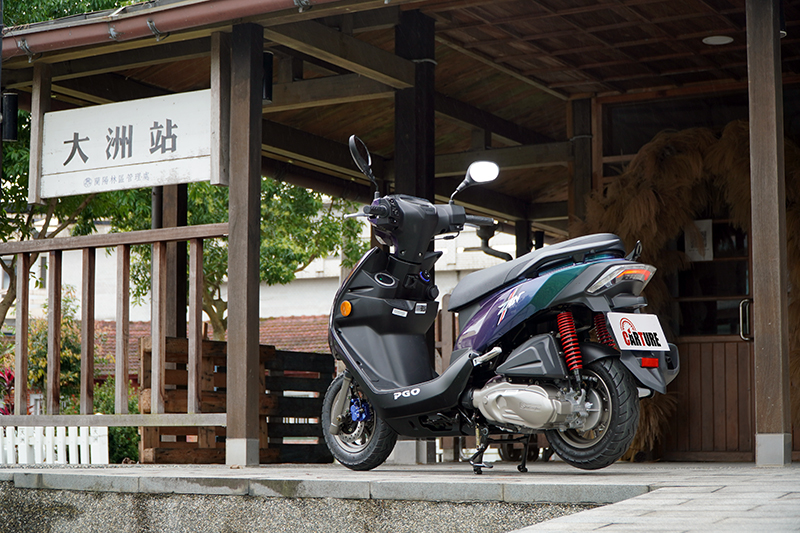 Zan125延續了Bon 125的簡潔俐落風格,較為短捷的前斜板設計,起初甫見到實車時就覺得比先前官發前導宣傳照好看,沒有太多繁複的幾何造型,反而有種清爽感,車側同樣呼應整體設計語彙,僅有一道類似汽車的向上刻劃的摺線點綴,搭配類迴力鏢造型的尾燈收尾。而PGO Zan125 擁有幾項領先同級車款的設計,包括最低僅735mm坐墊高度、達728mm之最長坐墊,與260mm最寬置腳空間,都讓騎乘者有更為舒適的乘坐感,尤其735mm的座墊高對於個子嬌小的朋友特別友善,長坐墊也更便於雙載,都符合了它實惠好用的主打訴求。