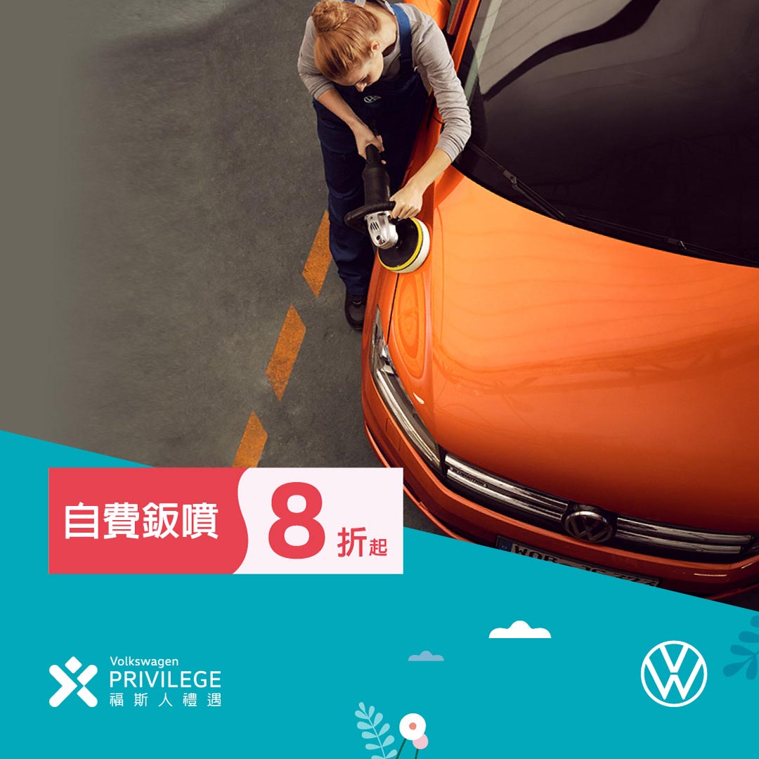 Volkswagen春季健檢即日起至4月30日止,免費提供愛車行車安全檢查(市價500元)、 免費O3臭氧除菌、除臭服務,如需鈑噴維修的車主,享自費鈑噴服務8折起,若使用My Volkswagen最新功能「鈑噴估價服務」申請預約詢價的車主,在維修完成後,還可獲贈Volkswagen原廠精品,此外,兒童安全座椅全面8折;而「福斯人禮遇計畫」會員車主另享多項專屬優惠,包含原廠指定耗材零件8折起、原廠精品配件64折起、抗敏防螨粉塵濾網75折,以及普利司通輪胎買3送1活動。
