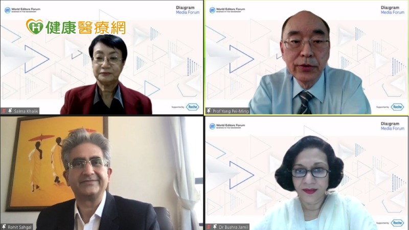 ▲左上:新加坡海峽時報資深醫藥記者 Salma Khalik,右上:肝病防治學術基金會總執行長楊培銘教授,左下:世衛組織西太平洋區慢性病防治顧問 Rohit Sahgal,右下:巴基斯坦傳染病協會主席 Dr Bushra Jamil