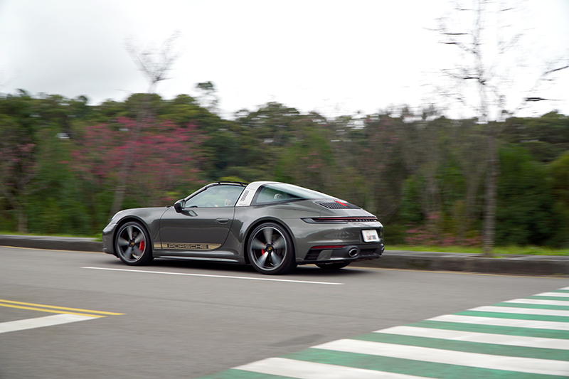 進化置992世代的911,高度穩定性讓多數人都可以輕鬆地駕馭,911 Targa 4S配置四輪傳動系統,另在試駕車上選配有保時捷動態與底盤控制系統(PDCC)與後輪轉向系統,在穩定中再增添靈活性,操駕起來更得心應手。 回到主角992世代的911 Targa 4S,就如同以往,當每次試駕911時,都會覺得每一代的911都是極致,很難再有進化的空間,但Porsche就是可以做得到,到了992世代,藉由更強大的電子輔助調校,讓車輛穩定性與舒適性再次提升,尤其是配置四輪傳動後,整輛車在山道上更是會像軌道車般緊貼於地面奔馳,450PS的馬力既飽滿有容易驅策,進化至今的911不僅可以完全實現日常使用,更讓人可以輕鬆地駕馭,後置引擎的怪脾氣幾乎被馴服到難以顯現。