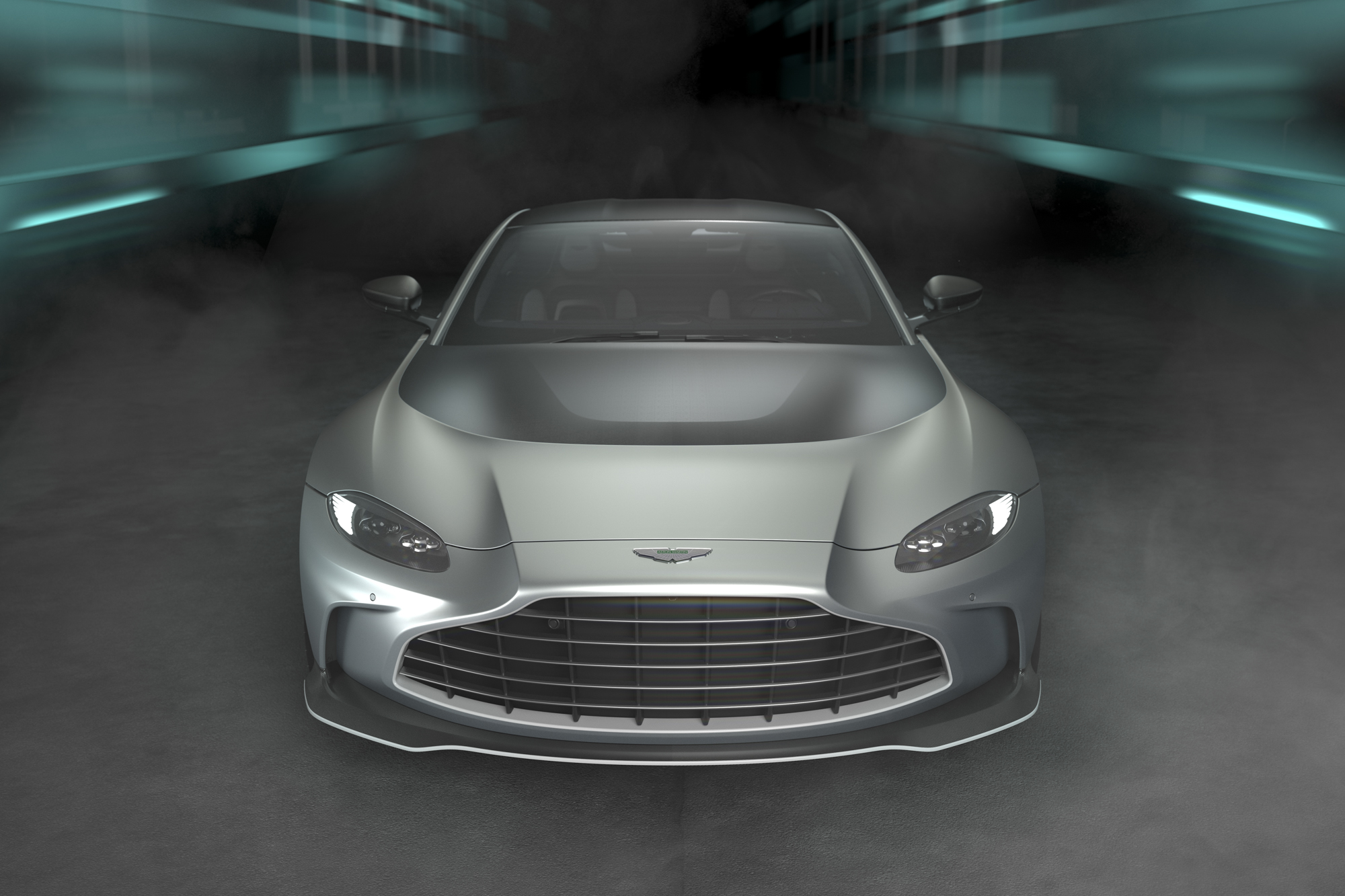 V12 Vantage 車頭設計採用全新前保險桿設計與寬體前側下擾流片,前擾流產生的下壓力與空氣力學相互平衡。為了增加通過引擎冷卻散熱的氣流,特殊的馬蹄型引擎蓋進氣口設計,搭配水箱護罩格柵面積增大 25%,有效增強冷卻效果,並致敬 Aston Martin 傳奇車款 V12 Vantage GT3賽車。