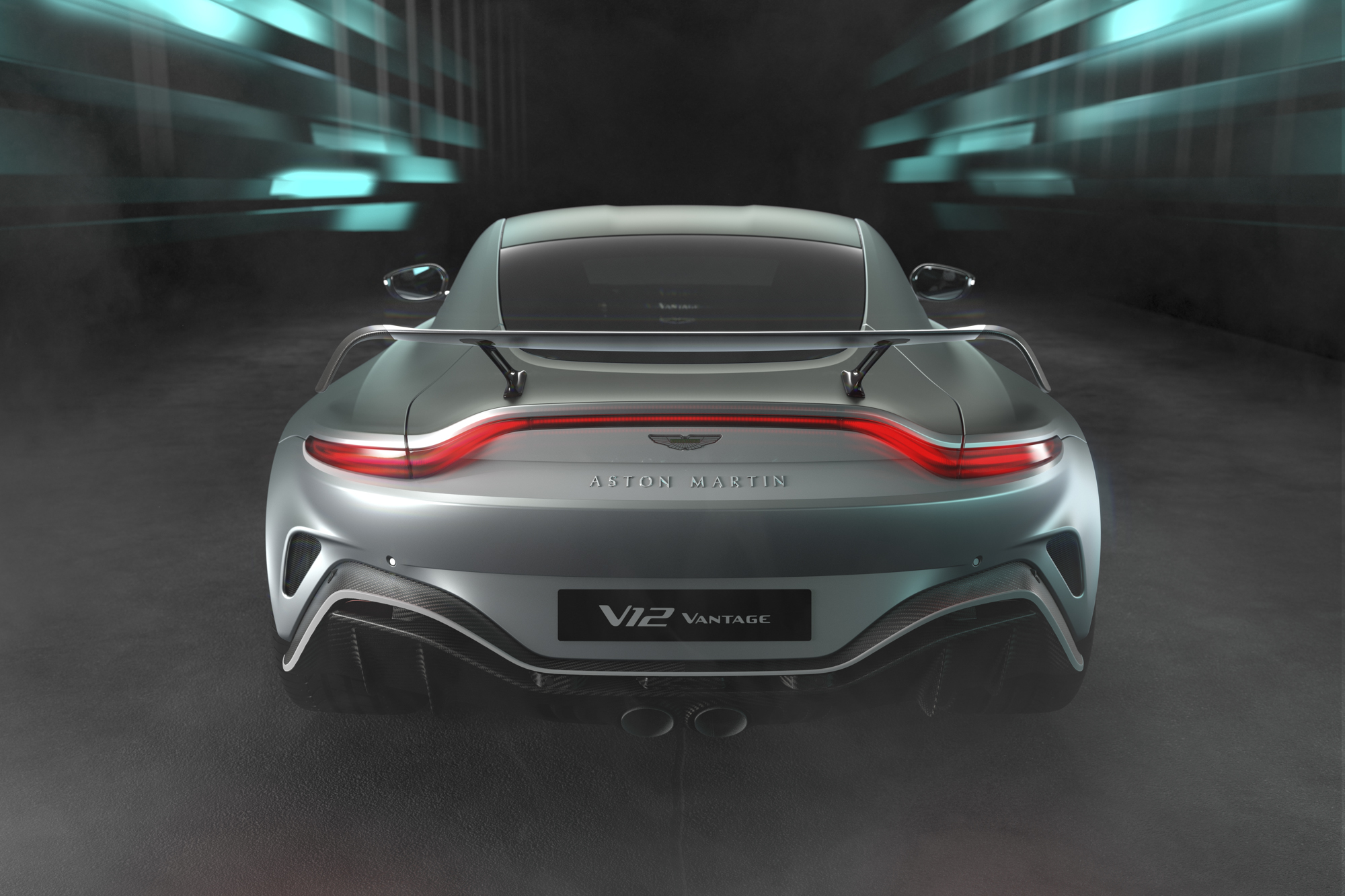 車尾採用全新後保桿與分流器設計,新設計的核心主角來自輕量化的雙尾管排氣系統;身為視覺焦點的尾翼設計,可提供高速行駛下 204KG 的最大下壓力,發揮 V12 Vantage 優異空氣力學所提供的高速穩定性。