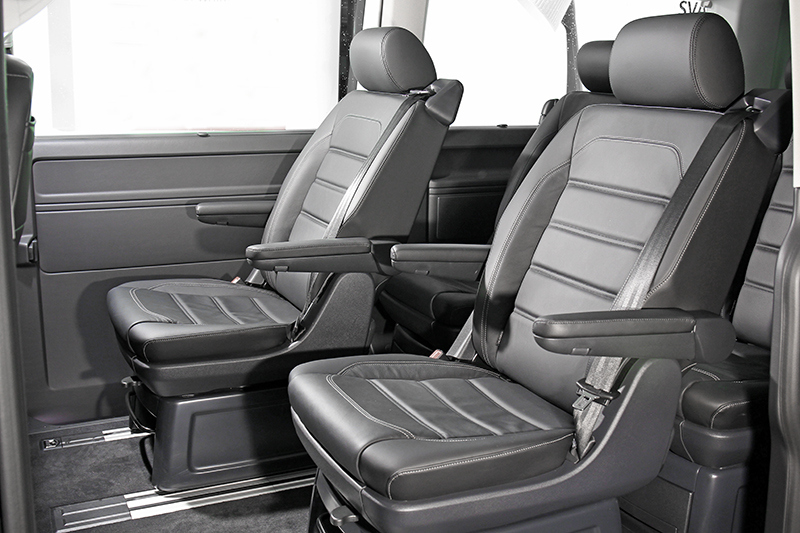 Multivan LWB是該車系唯一配備18吋輪圈的車型。 想當然Multivan LWB最大特色就是車室規劃,相較於其它Multivan車型Multivan LWB車長增加400mm來到5,304mm,軸距也同樣成長400mm到達3,400mm水準,在車長與軸距都成長情況下,Multivan LWB座位也從2-2-3七人座增加至2-2-2-2八人座配置。除了乘載人數增加外,也維持Multivan招牌特色第二排旋轉座椅,旋轉後即能和第三排及後方乘員進行會議或是聊天,不過Multivan LWB則取消了多功能會議桌,但換得卻是後艙全數配置六張獨立座椅,搭配無段滑軌系統不僅能依需求自由前後移動,就連第四排乘員也能享有寬敞舒適的乘坐空間,同時人員進出相對也更為方便。