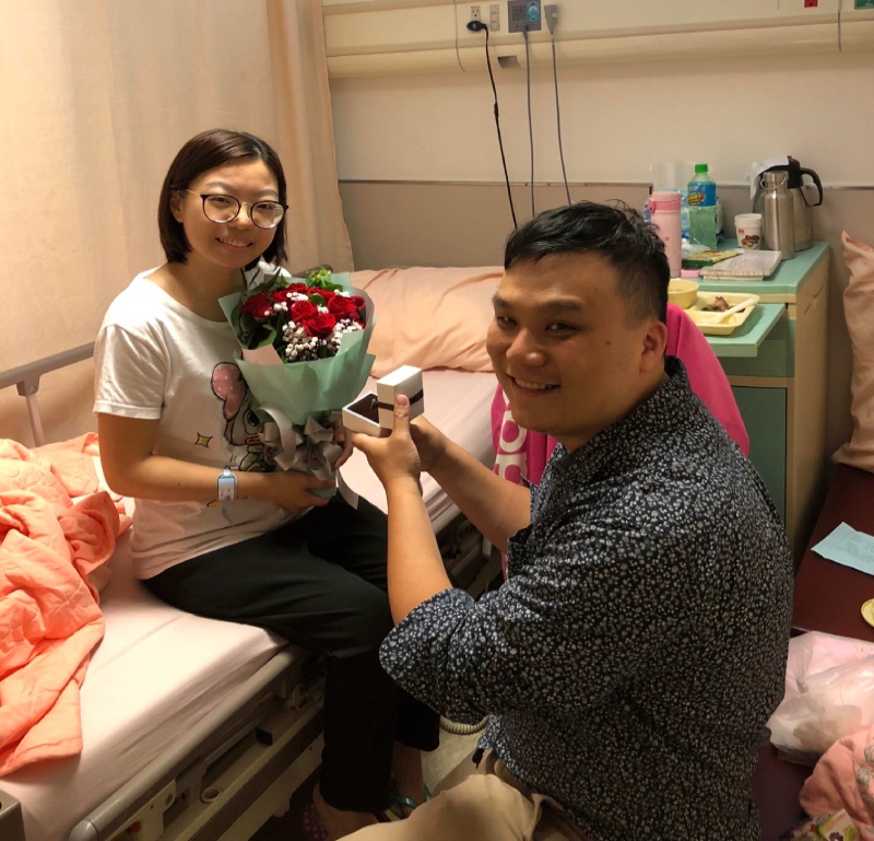 ▲曾昭揚在病房中與李淑婷求婚的現場。圖:李淑婷提供。