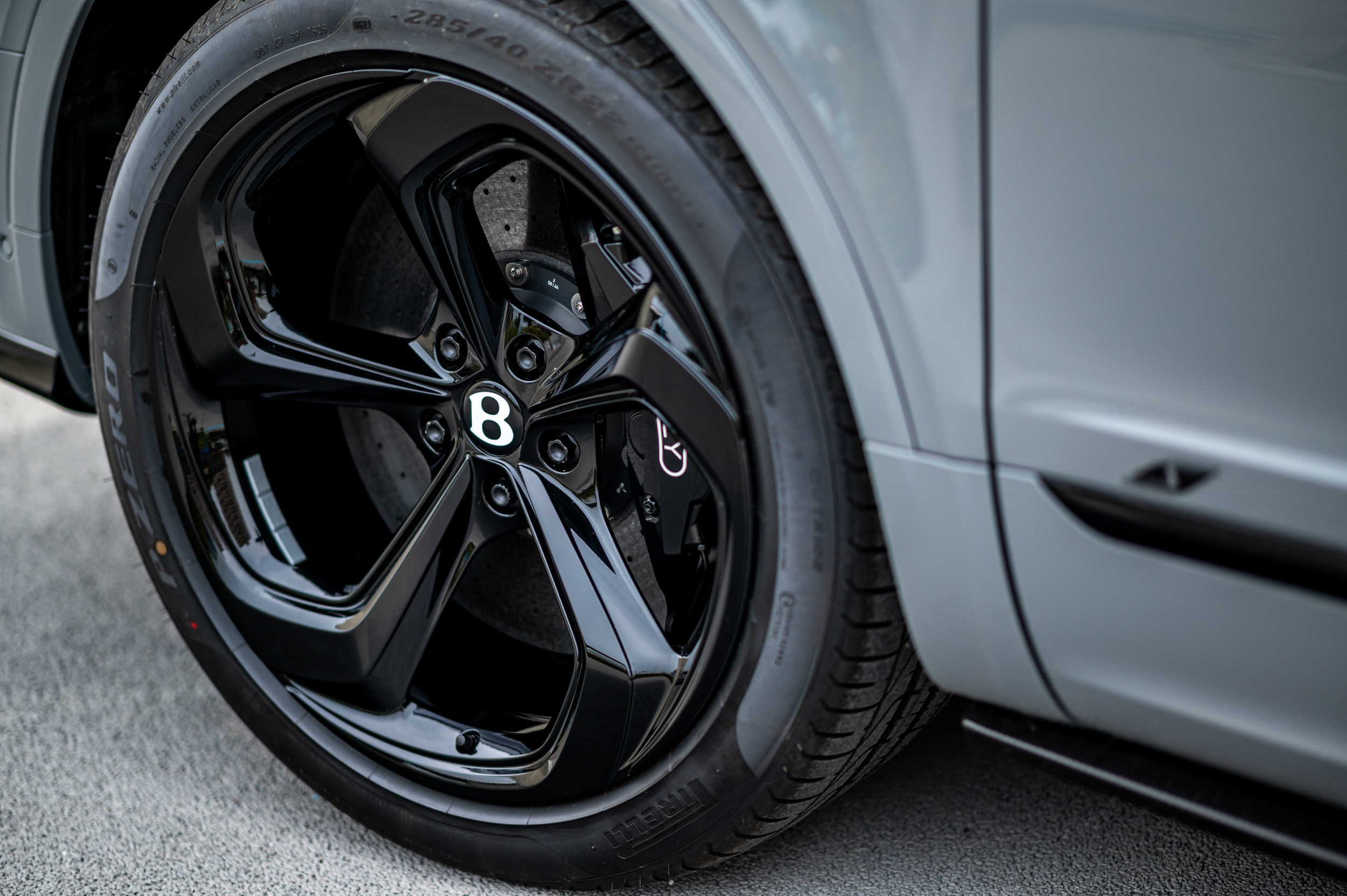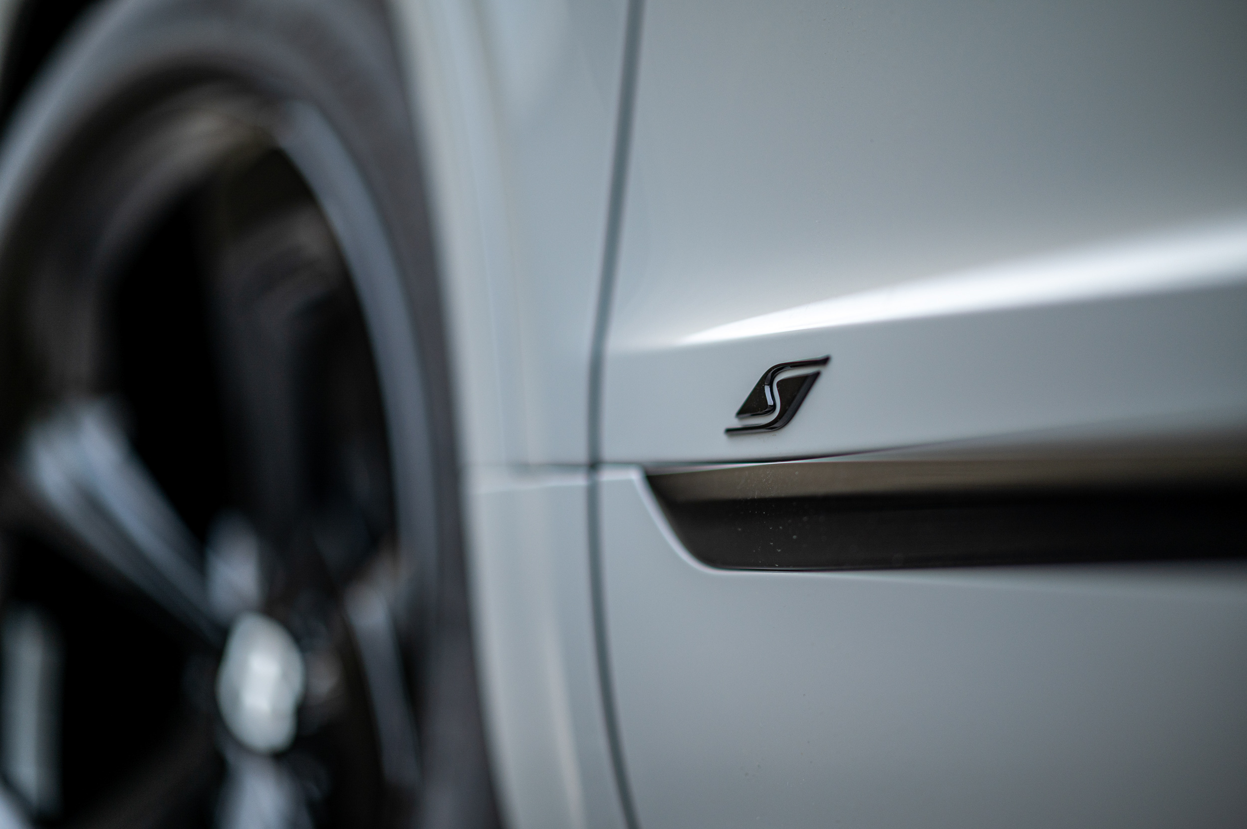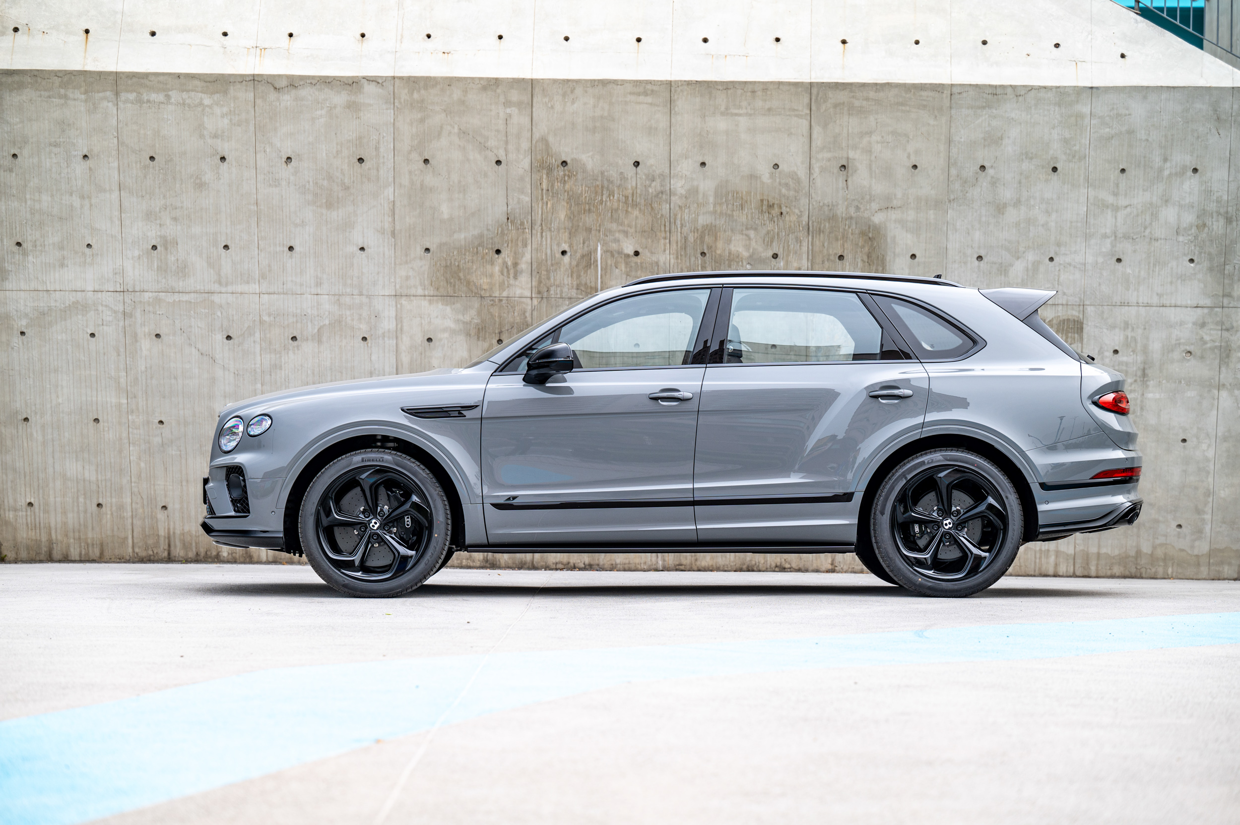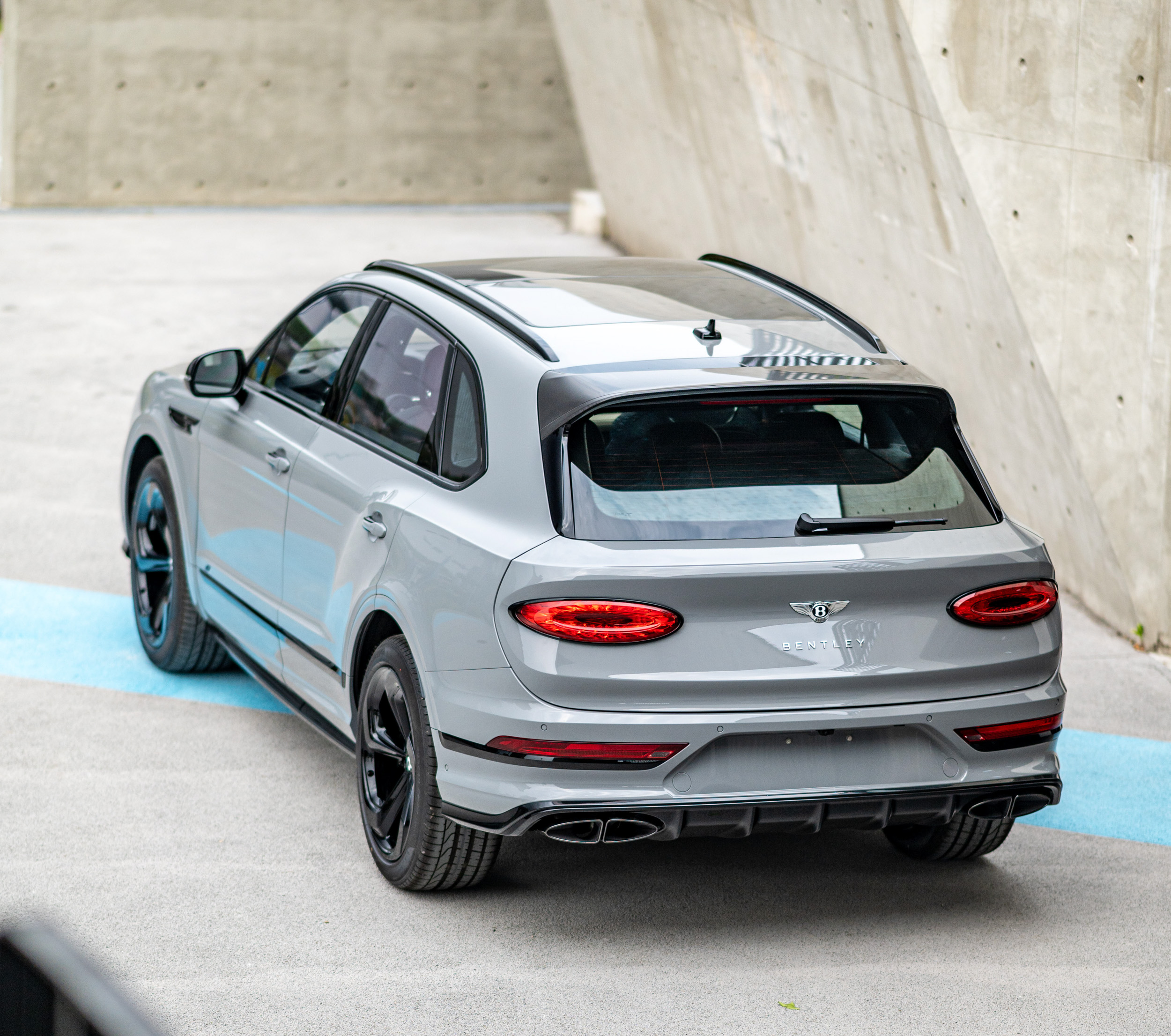 全新 Bentayga S 在強化駕駛反應外,全車外觀還以亮黑套件刻劃肅殺性能表徵,除了將頭燈、尾燈及水箱罩格柵等鍍鉻部件改以亮黑色處理,專屬亮黑色後視鏡蓋與’ S ’車側標誌點綴,標配運動排氣聲浪橢圓分體式排氣尾管,並搭配專屬車身側裙與加大面積後尾翼、S 車型專屬設計22吋指向性輪圈。