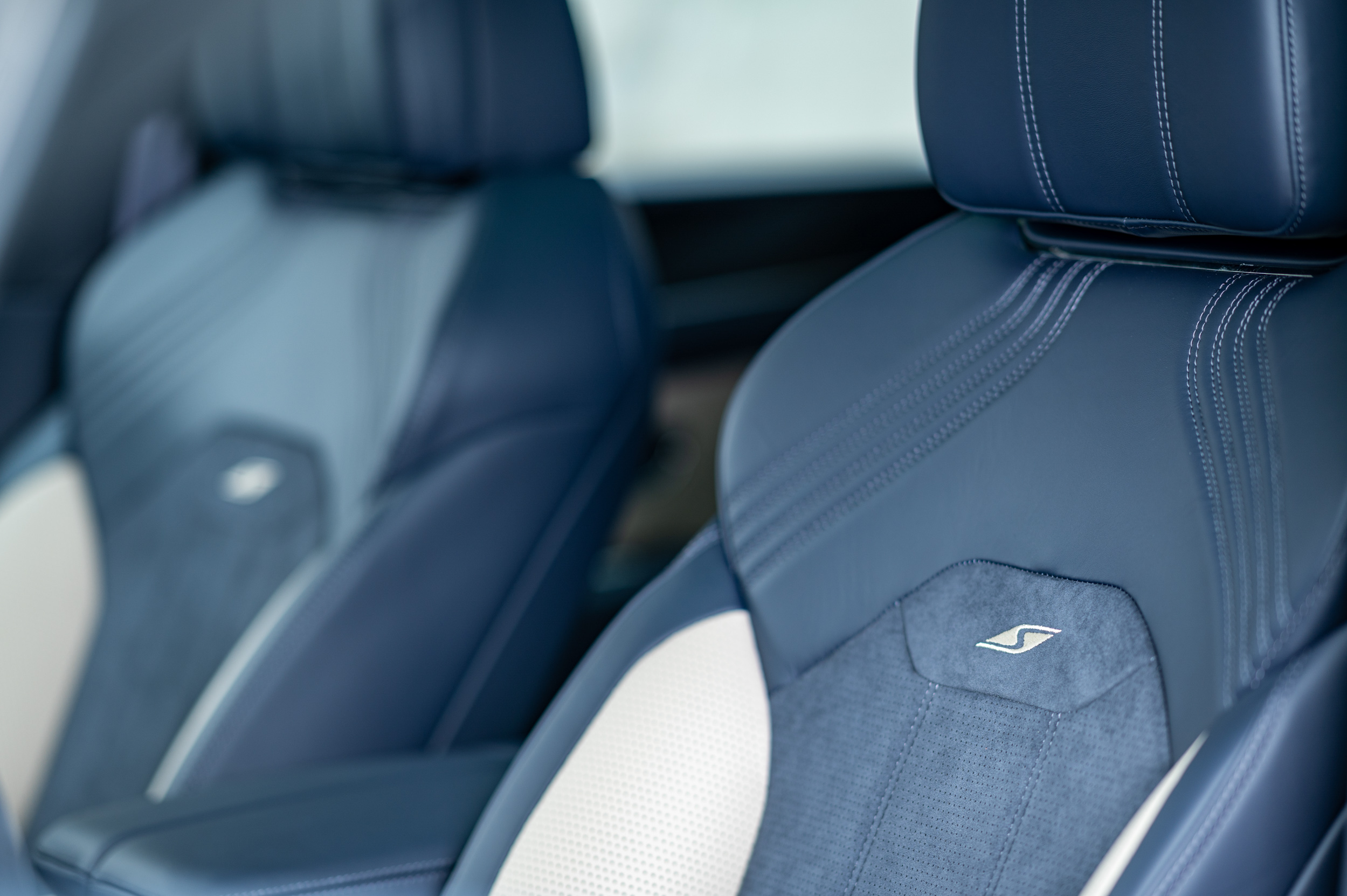 Bentayga S 以獨特運動化設計呼應動感外觀,採用 Alcantara® 麂皮材質結合頂級皮革,車型獨有的色彩配置搭配位於椅面的專屬’ S ‘刺繡車標,如同性能宣示展露於車內飾板及發光迎賓門檻。