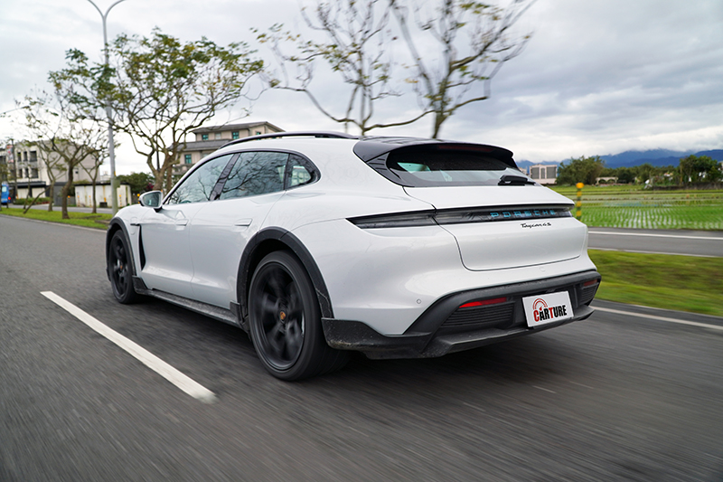 順應Taycan Cross Turismo的定位,外觀上在車體下緣、輪拱都加了黑色防刮材質,試駕車令選配越野套件則是增加側邊擾流翼點綴。