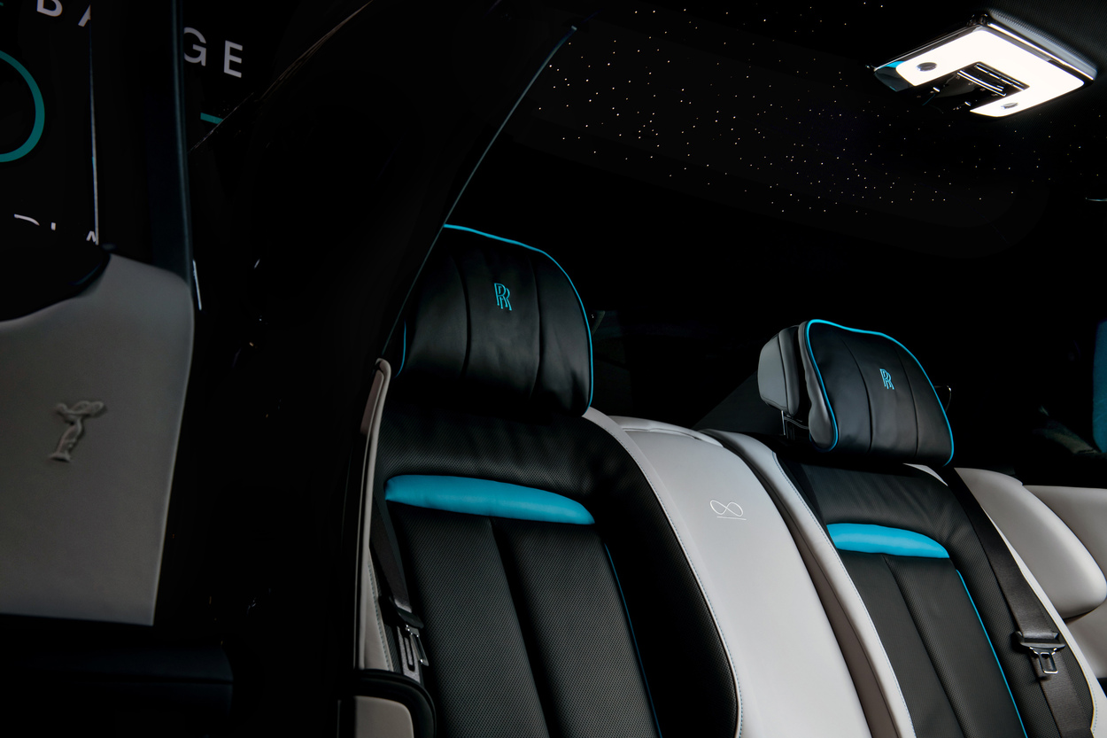 內飾材質的應用採用先進精細的編織技藝,在碳纖維和金屬纖維織料上織出鑽石菱紋。Black Badge Ghost 內飾襯底採用多層實木,內飾頂層表面先用黑色鋪墊,之後再墊上科技纖維層。為保證飾面光滑平整,所有部件需經過一小時的 100 度高溫處理,再進行噴砂,預處理過後進行六層噴漆,手工打磨拋光後再進行組裝。