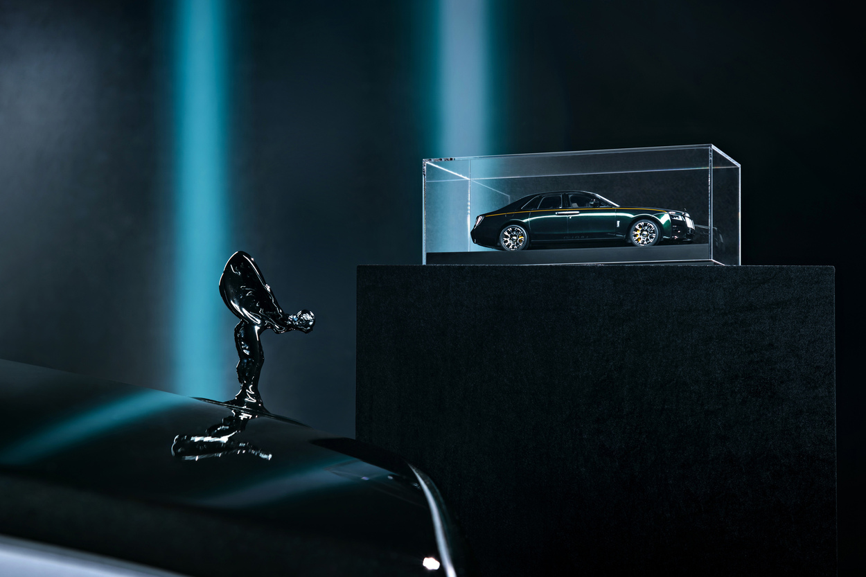 而本次隨同 Black Badge Ghost 發表當天也同步展出 Black Badge Ghost 採用深祖母綠外觀車漆搭配鍛造鮮黃色單腰線的 1:18 模型車。數量有限,並僅提供給身為尊貴的勞斯萊斯車主做選購,選購價格為新台幣 85,000 元整。