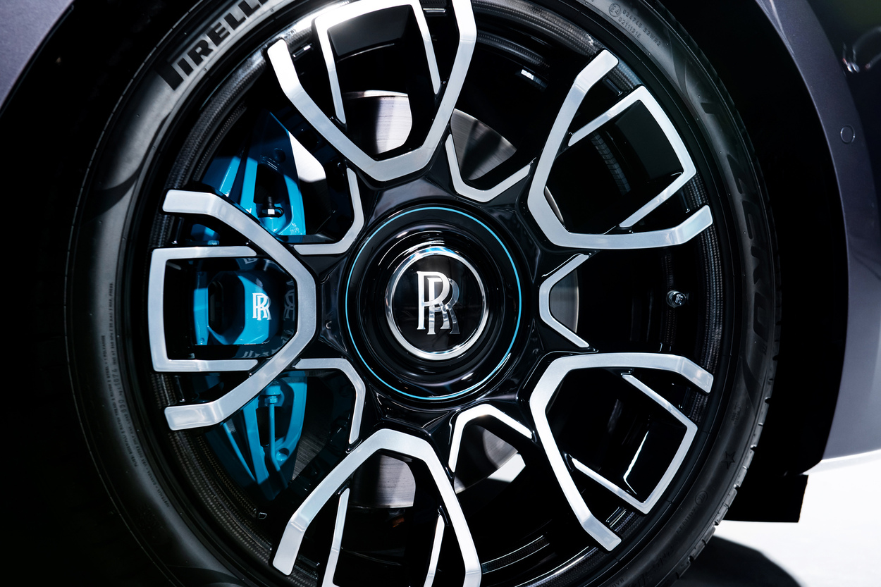 勞斯萊斯 Black Badge Ghost 的外觀設計還包括 Bespoke 高級定制的 21 吋複合輪框。該輪框延續了 Black Badge 風格,並打造了Black Badge Ghost 專屬設計,每個輪輻均由位於三軸之上的 22 片碳纖維組成,每片碳纖維在輪輻外邊緣向後折,共形成 44 片碳纖維,以提升強度。為凸顯材料卓越品質與非凡的表面效果,車輪採用淺色漆噴塗以保護飾面,與此同時,仍然可觀察到這款車框先進獨特的碳纖維結構。