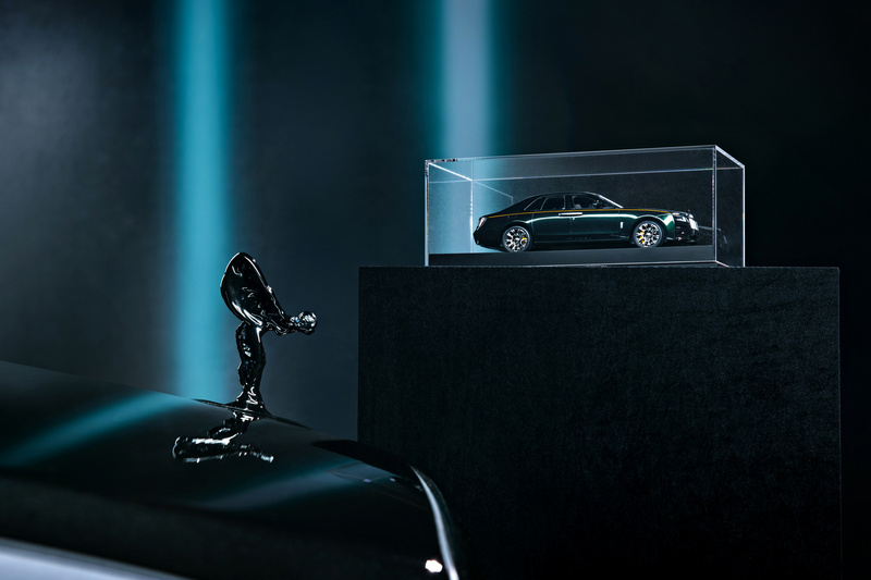 而本次隨同 Black Badge Ghost 發表當天也同步展出 Black Badge Ghost 採用深祖母綠外觀車漆搭配鍛造鮮黃色單腰線的1:18 模型車。數量有限,並僅提供給身為尊貴的勞斯萊斯車主做選購,選購價格為新台幣 $85,000元整。