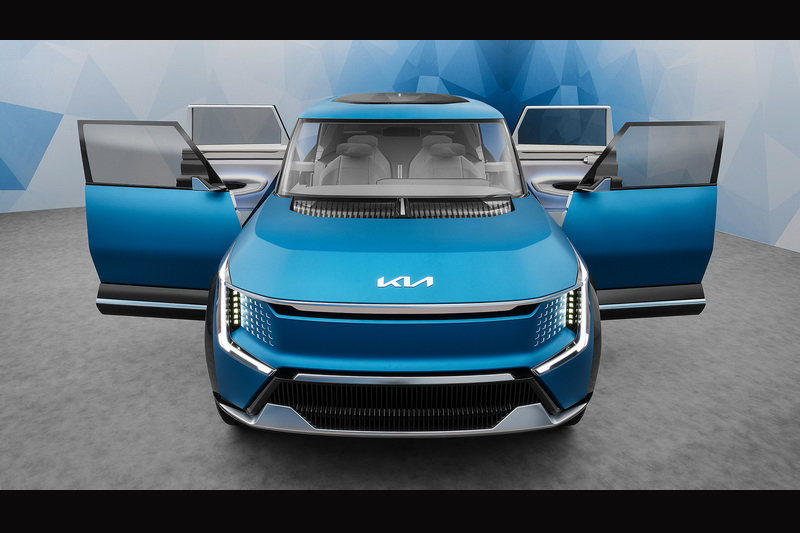 量產版EV9估計在身形尺寸上與概念車相去不遠,近5米的車長加上三排座位的設定歸類於中大型休旅級距,外觀上採用品牌最新的“Opposites United”設計語彙,以俐落且稜角分明的刻劃方式詮釋出充滿未來感的外貌,另外封閉式水箱罩兩側採用大量LED作為面部的辨識特徵,加上攝影機後視鏡頭及對開式車門設計更是有效增添整體的科技程度。