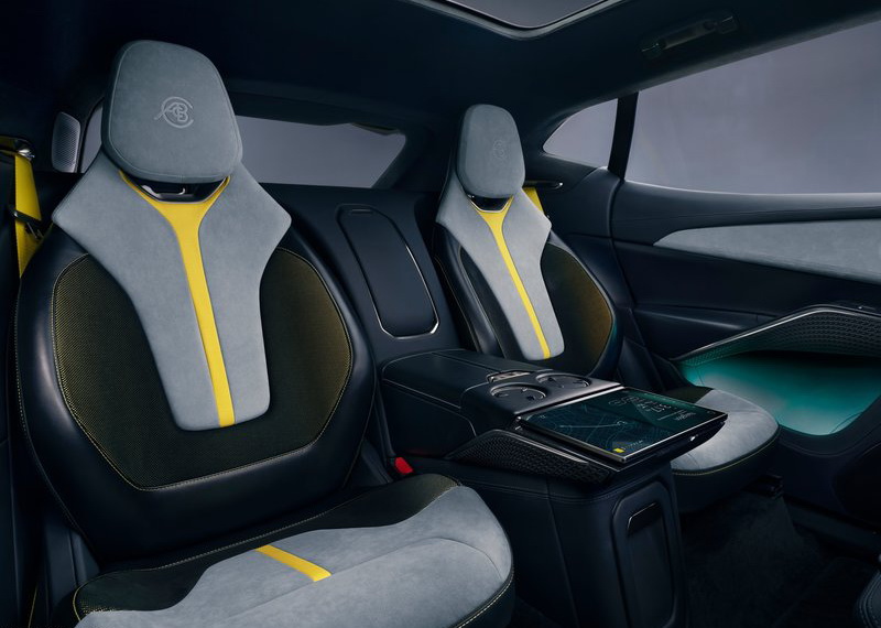 進入車室後可發現Eletre的車艙充滿濃濃的科技感,數位駕駛儀表及大尺寸中控螢幕可說是現代電動車的必備項目,除此之外副駕駛座也配有額外的控制面板賦予其更濃郁的科技程度,另外還發現儀表板上方採用與尾翼相同的分離式設計,此舉亦讓Eletre在同級車中更顯獨特,左右門板上則以金屬質感的喇叭凸顯貴氣,一旁還有小型螢幕用來顯示數位後視鏡的畫面,若選擇的是四座車型,後方的兩張獨立座椅中央還可配置中央扶手及大尺寸控制面板,搭配以回收材料與碳纖維飾板混搭的內飾風格營造出溫暖卻又不失動感的車艙氛圍。
