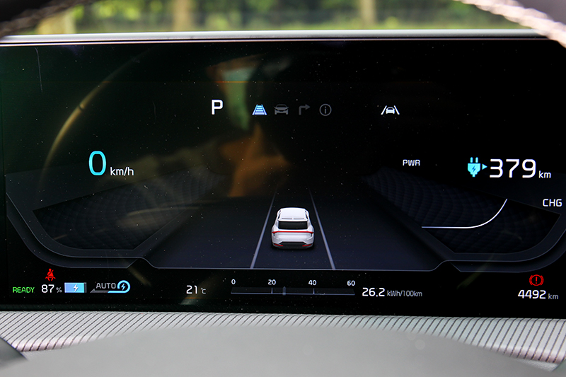 如果之後在路上看到造型前衛獨特,並快速的從你眼前刷過別吃驚,因為EV6就是有這種令人驚訝的本事,試駕的EV6 GT-Line e-AWD搭載77.4kWh鋰電池,擁有325hp/61.7kgm最大輸出,0~100km/h加速只要5.2秒,此性能加上電動車輸出特性,在Sport模式全力輸出,不僅能讓老司機獲得強烈貼背感,帶來有如駕駛高性能跑車感受,甚至於路上都能輕易將一票燃油車拋在後方。但若對油門踩踏不夠細膩且又是首次接觸EV6,建議先選擇較為平緩但仍有充足輸出的ECO模式。