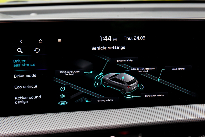 EV6的特點當然不僅如此,還有方向盤加熱、加熱/通風座椅、Meridian音響、感應式電動尾門、SCC智慧巡航控制、LFA 進階型車道維持、BVM盲區影像輔助、RSPA控智慧停車輔助、V2L電源分享等多項配備。另外,2,900mm軸距、後座椅背可調/前後滑移,使其不論駕車或乘坐都能有著便利及舒適的感受。