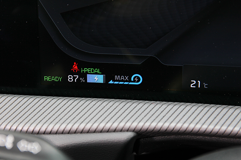 可自行設定動能回收力道,i-Pedal模式只要透過電門就可控制加減速或停止。