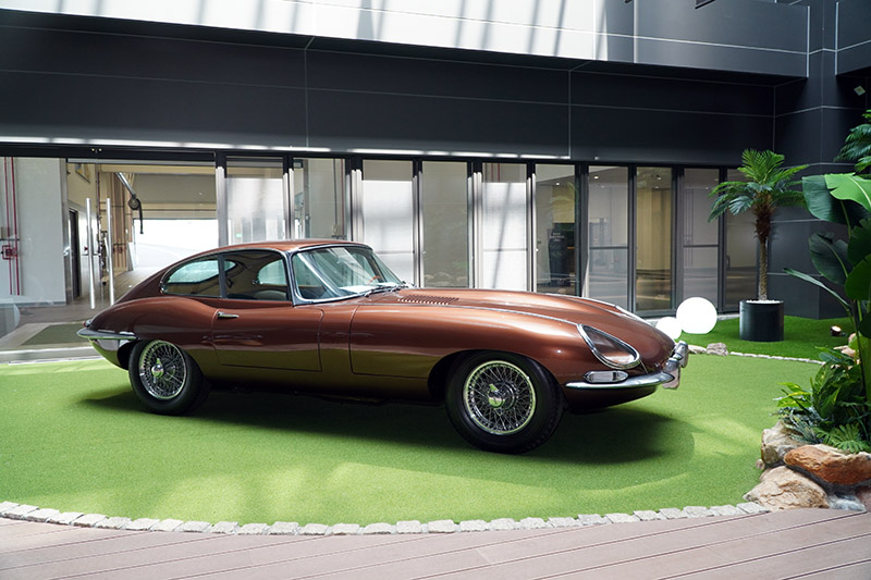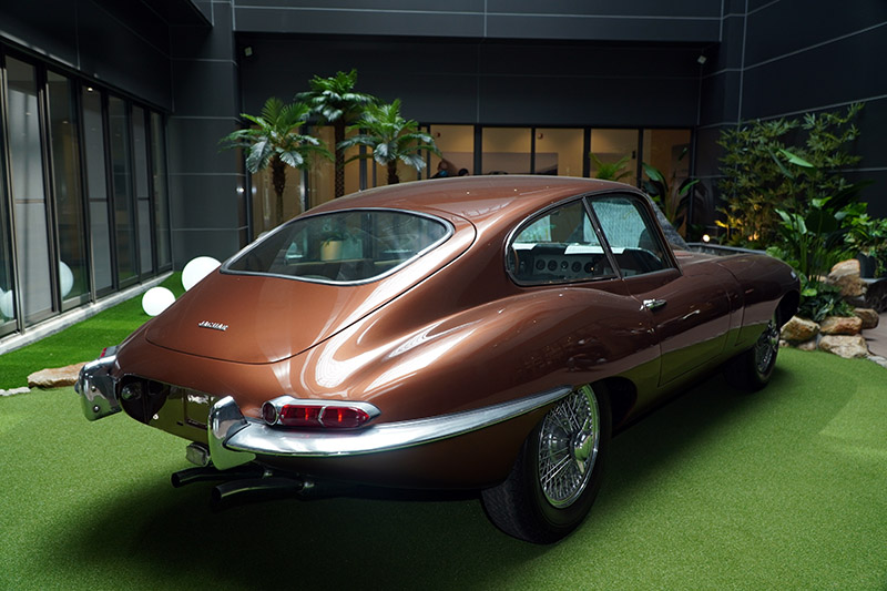 建物擁有全台唯一天井設計,開幕當天特與收藏家商借經典名車E-Type展示。