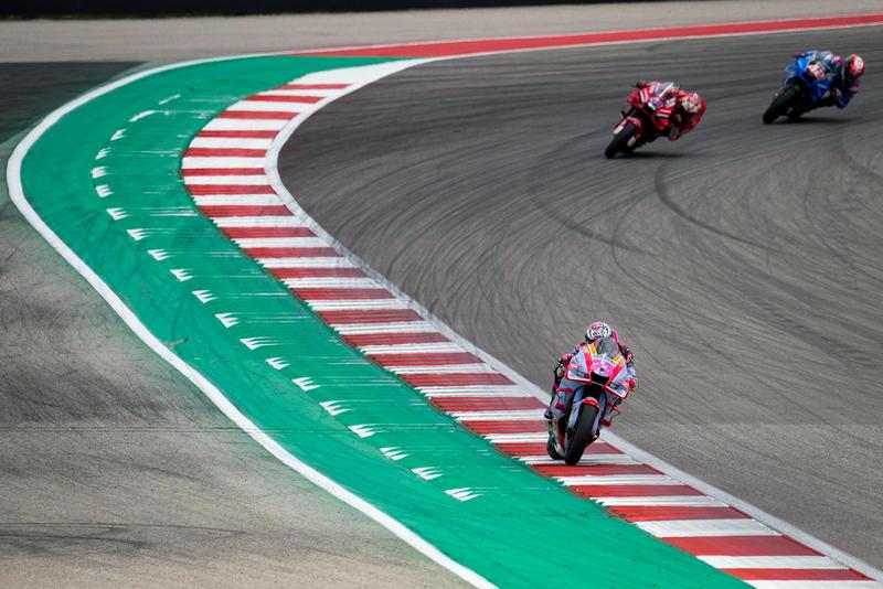 擁有美國王稱號的Marquez,在經過兩站休養後於美國站回歸,不過在排位賽中並未奪下杆位僅以第9位出發,反倒是Ducati大軍霸占前五名位置,起跑後Marquez竟失誤掉到最後,而Bastianini再度上演反超戲碼。