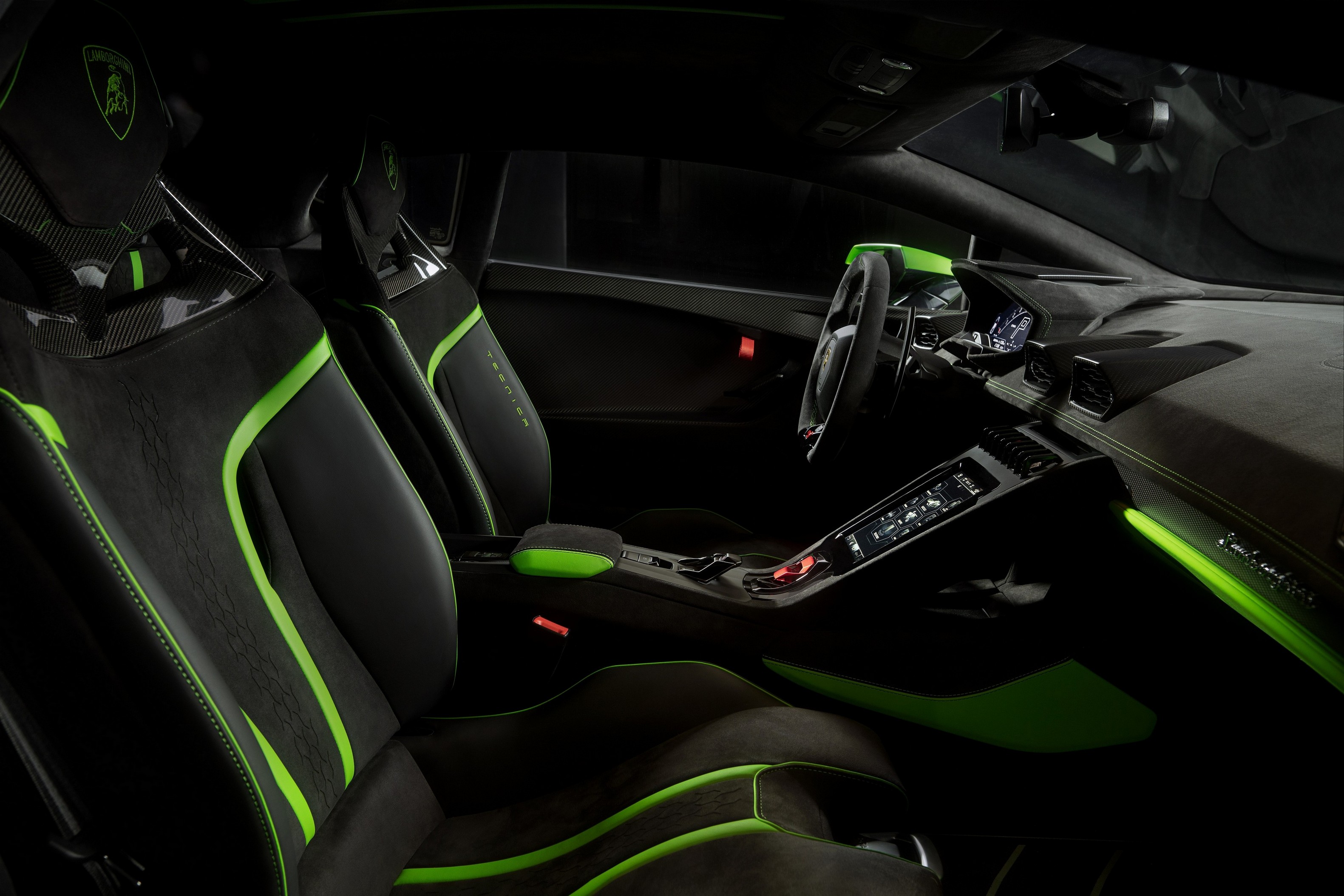 Huracán Tecnica 的內裝配備可高度調節的運動化座椅,並可選配輕量化門板、輕量化鈦合金材質打造而成的防滾架或輪圈螺絲及四點式安全帶。專為此車輛重新設計的 HMI 觸控式螢幕,可輕鬆控制車輛各項連接設備與 Apple CarPlay 連接功能;受Huracán STO啟發,同樣可由觸控式螢幕控制的遙測系統,針對遙測資料進行即時記錄,並可與車主專屬的 Lamborghini UNICA手機應用程式連動。