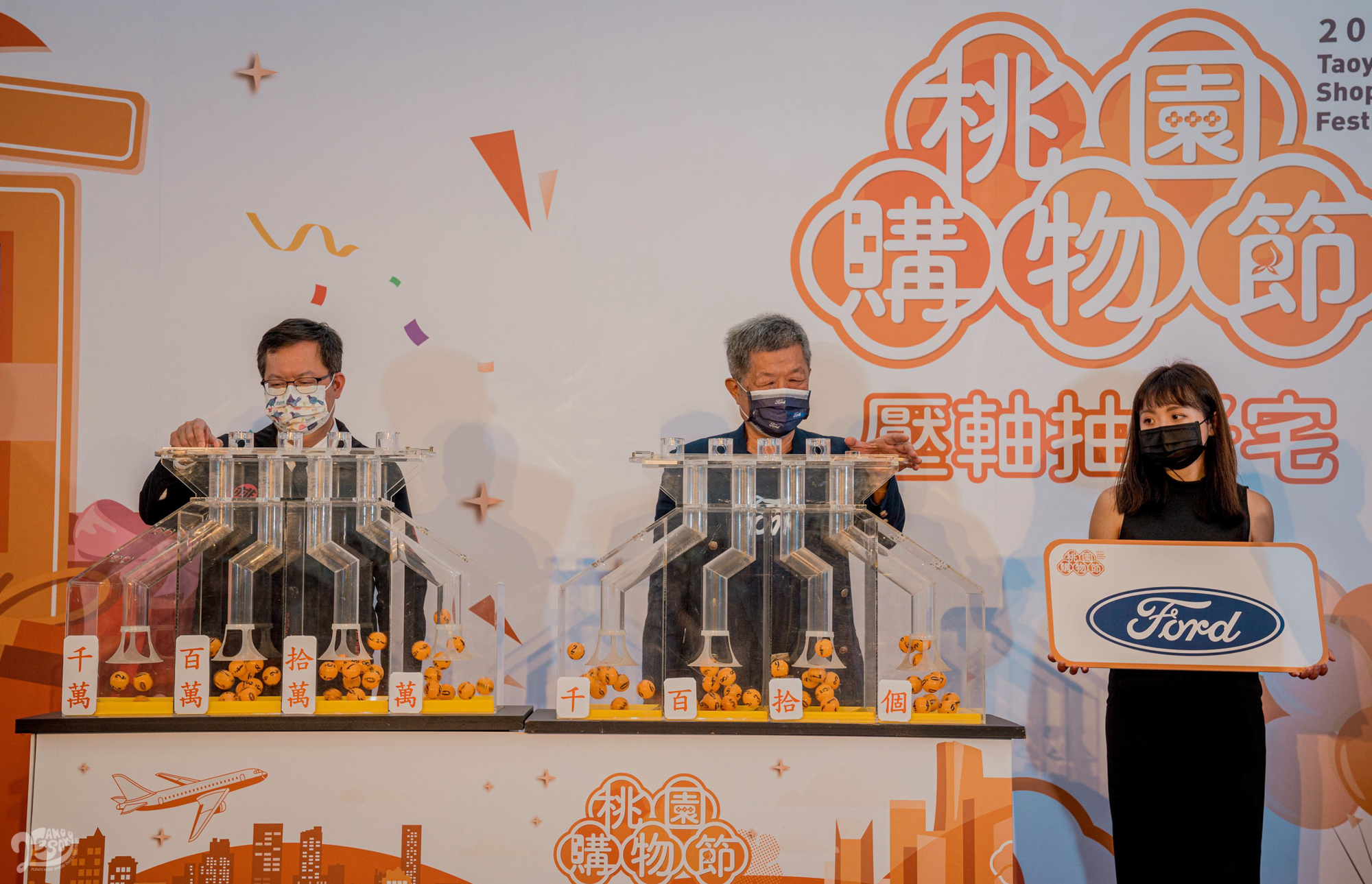 2021 桃園購物節在今日(4/14)舉辦的「壓軸抽」最終抽獎活動中抽出汽機車項目最大獎,桃園市長鄭文燦表示:「2021 桃園購物節於去(110)年 11 月 5 日開跑以來至 4 月 7 日登錄活動截止,登錄總金額來到新台幣 150.4 億元,感謝福特六和汽車大方提供 Kuga 休旅車作為活動抽獎。」