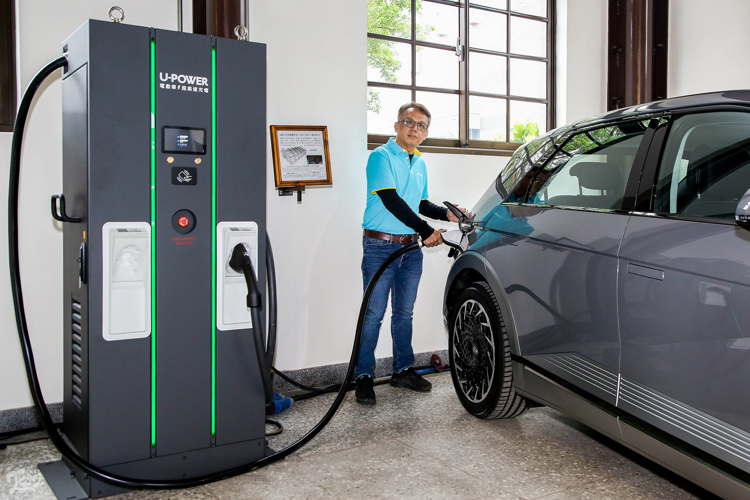 電動車充電速率會受到充電功率影響,理論上功率愈高且維持高功率時間愈久,充電的時間愈短。為提供電動車車主最好的充電體驗,旭電馳科研旗下 U-POWER 超高速充電站,採用國內充電設備大廠飛宏(2457)所出品、全球最高功率 360kW 充電樁,在理想狀態下註2 ,使用液冷式充電槍可發揮最高至 360kW 功率,相較於其他業者的 200kW 與 120kW 充電樁,U-POWER 超高速充電服務可以顯著縮短充電時間。以 Hyundai Ioniq 5 為例,搭配 U-POWER 超高速充電服務,從電量 10% 充至 80% 最快僅需 18 分鐘。