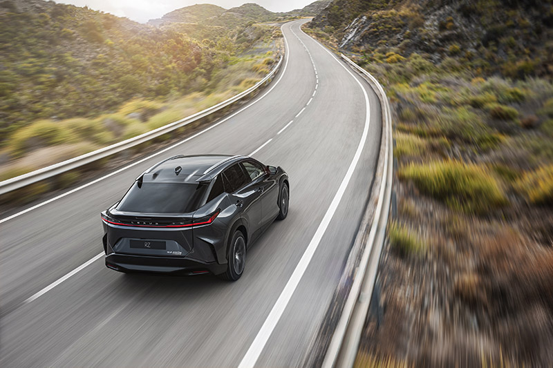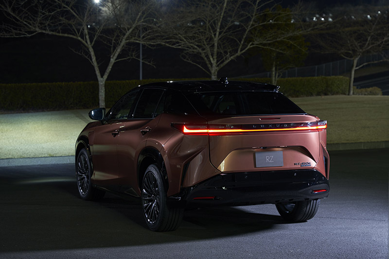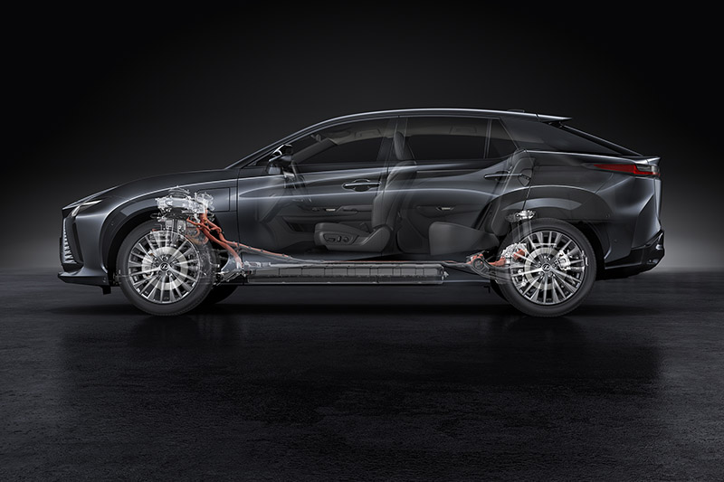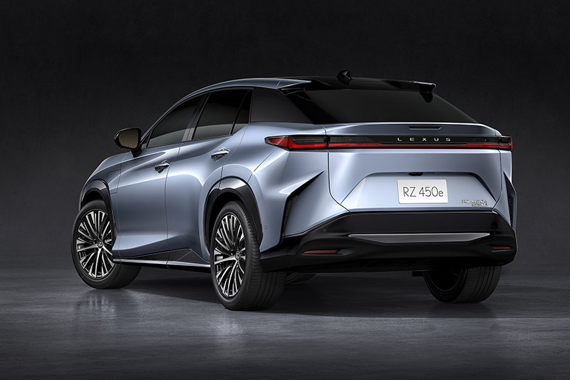 首波亮相的RZ 450e ,車身尺碼為4,850x1,895x1,635mm,軸距為2850mm,整體尺碼就與目前販售的RX標準車型相當,造型上也完全可以看出Lexus一脈相承的家族風格,但相較於RX,車高較低的RZ 450e更具動感跑格。而RZ車系採純電動車專用的e-TNGA平台開發而來,具有輕量化、高剛性特色,並透過良好的電池與馬達布局,達到最佳的配重,以利提升車輛本質,提供高水準操控。