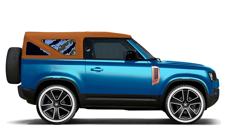為滿足部分消費者渴望敞篷Defender,荷蘭車體訂製廠Heritage Customs將基於Defender 90打造敞篷車型,將提供Côte d'Azur、Solihull Sand 和 Kokkini Paralia三種版本組合,其中Solihull Sand Valiance走的是英國鄉村風格,採經典淺綠色車色,搭配灰色保桿與米色軟篷,以及配置一套 20 英寸的白色“Space Cowboy”輪圈,車內則會配上銅色飾板、 Spinneybeck編織紋路皮革,以及經典款座椅與方向盤。