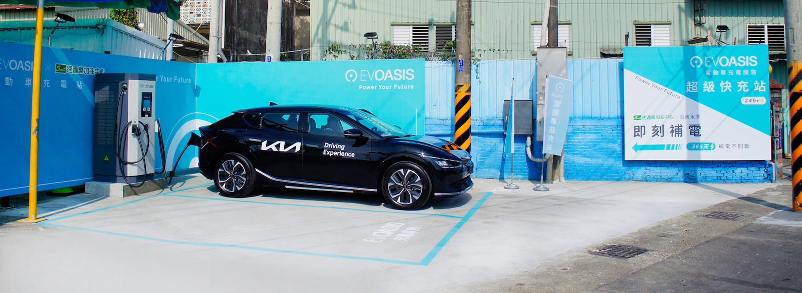 這次開站為回饋車主,品牌祭出超驚喜方案,即日起至5/15,前來充電站補電,就享5.8元/度電之優惠費率,充電滿100元者,還可50元加購洗車,再額外送車體護膜。此外,EVOASIS更邀請到合作的車廠夥伴KIA,以榮獲歐洲年度風雲車肯定的EV6車款,作為該站的充電啟用示範車。面對車主及車廠們的期待,EVOASIS也積極強化都市及環島充電站的密集度,今年也有更多新站準備上線,要外界敬請期待。並號召更多加油站及企業夥伴,成為EVOASIS充電合作對象。