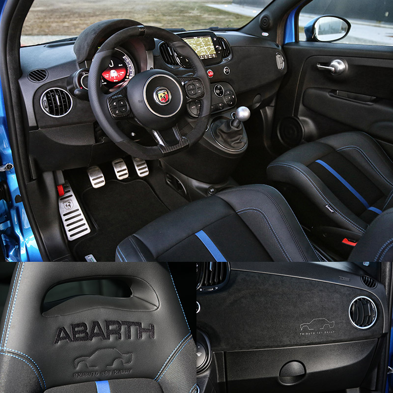 座艙中則是以Scorpion Black黑色為基調,並在座椅搭配車身相同的藍色縫線與中央線條,另在手套箱上緣與座椅頭枕下方也有131 Rally的輪廓壓印。如前言所說的695 Tributo 131 Rally將僅限量生產695輛,可預期地將會掀起搶購熱潮。