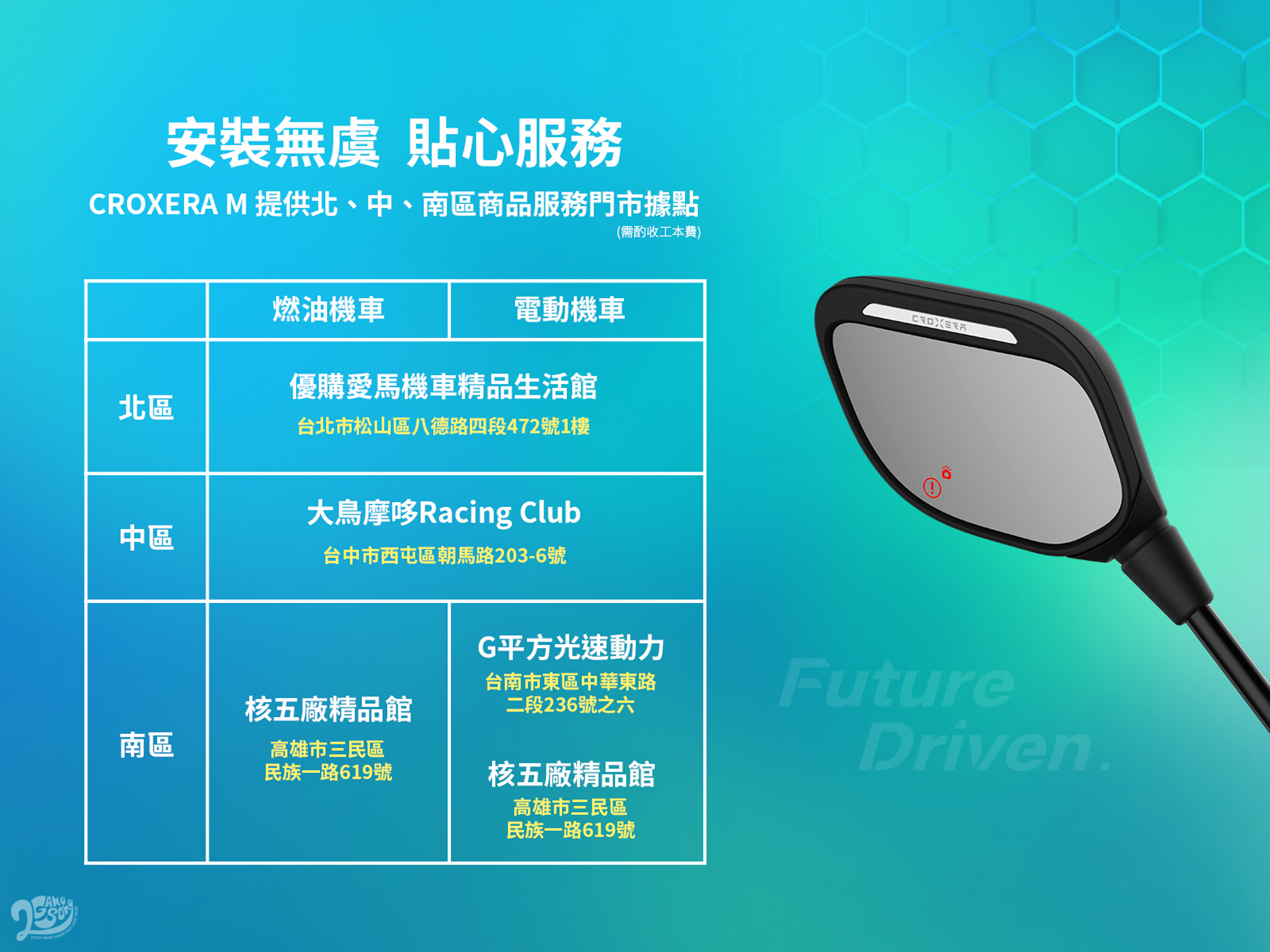 <CROXERA M 智慧後照鏡與商品服務據點介紹>