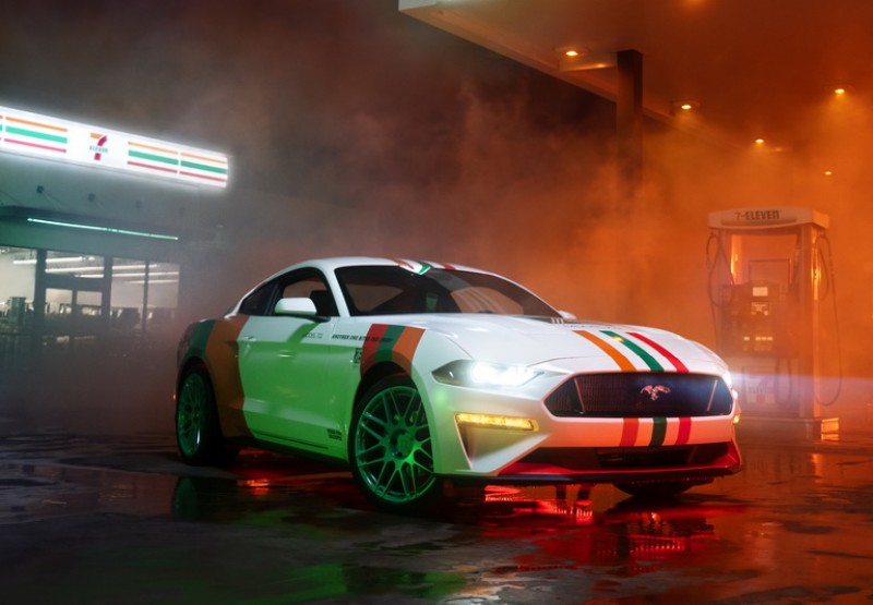 昨天才介紹過租車公司Hertz打造了一輛馬力高達900匹的瘋狂野馬當出租車的新聞,今天7-11也打造了一部擁有特殊彩繪的Mustang準備做為獎品送給顧客,消費者只要透過APP購買指定商品就有機會獲得這款特殊配色的Ford Mustang。