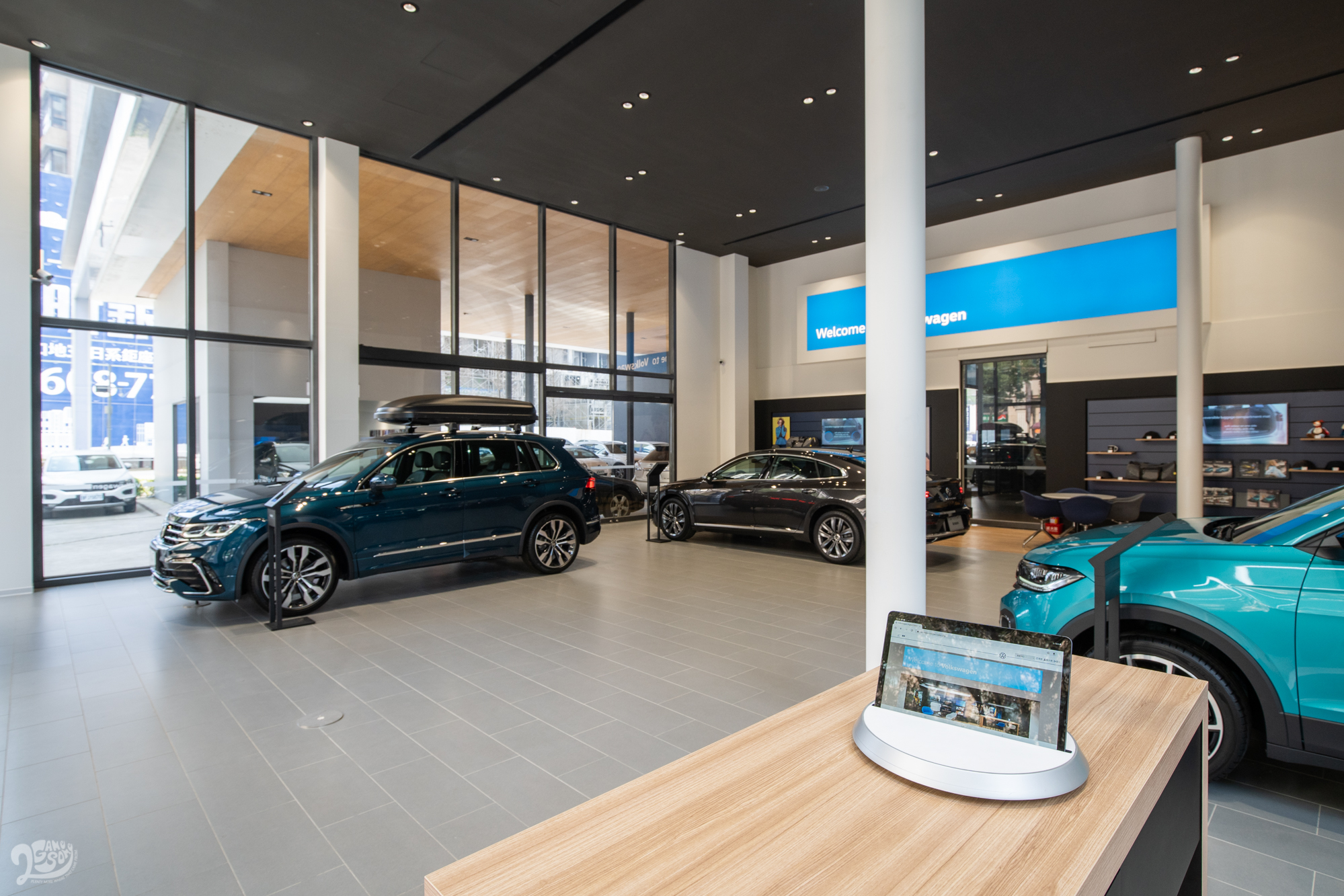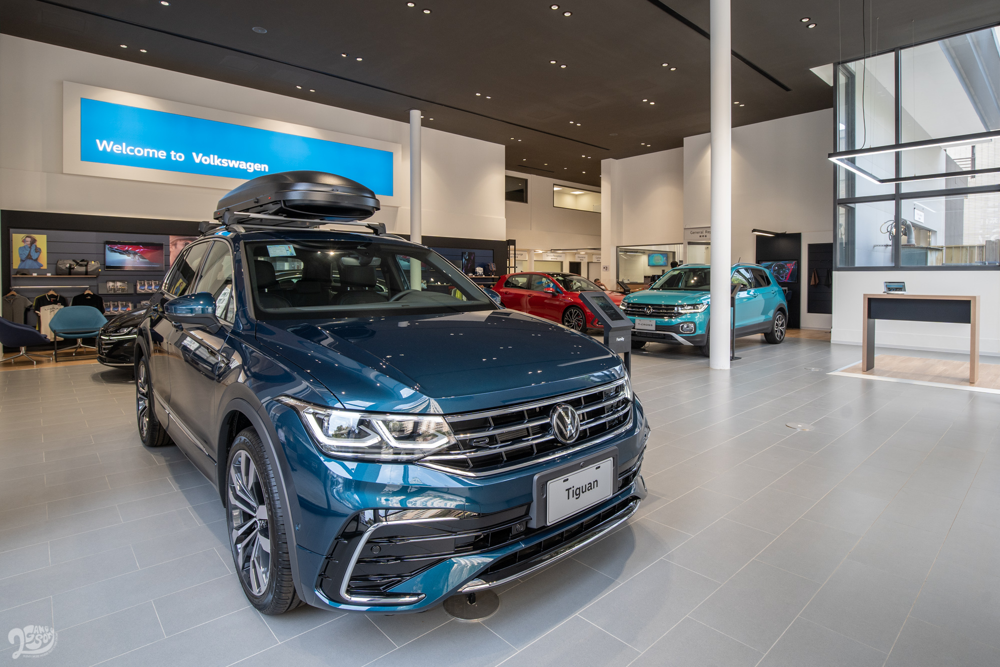 全新 Volkswagen 林口展示中心,導入新品牌識別 New Volkswagen,以落地玻璃帷幕設計,結合明亮挑高的空間規畫,室內搭配自信飽滿的色彩,給予消費者寬闊大器的賞車氛圍。依據林口主要消費客層—小家庭為導向,Volkswagen 林口展示中心帶來多款暢銷休旅、五門掀背車款 Golf 與鋼砲經典 Golf GTI 等,各車款皆有數位化產品規格立牌,方便消費者詳閱完整規格配備、車輛相關影片以及最新銷售方案,銷售顧問團隊同樣透過平板電腦輔助,介紹車輛操作與最新功能,令消費者一手掌握所有車輛相關資訊。另設立保養服務中心,配有保修工作車位,專業技師團隊以完善的售後保養維修、專業汽車美容等服務,給予在地消費者及車主各項購車與回廠需求。