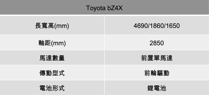 bZ4X有著一具201匹最大馬力與27.2公斤米最大扭力的電動馬達,以及一套71.4kWh電池模組。