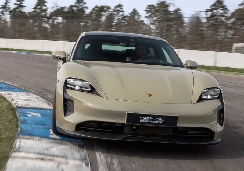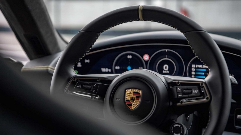 內裝則透過Porsche Exclusive Manufaktur客製化服務部門重新調配,導入了深黑色皮革與Island Green對比縫線,內飾板則選用Paldao開孔木材質點綴出更高級的視覺質感,另外中央鞍座皮革同樣印有Hockenheimring Edition字樣,車門打開時的投射照地燈也會映射出90周年的紀念圖樣;動力部分並無調整,依舊是採用可輸出590匹馬力的雙電動馬達系統,電池容量為93.4 kWh,0-100 km/h為3.5秒,不過為了區分產品的差異性,氣壓懸吊的軟硬度以及煞車力道還是做了些許強化動作。