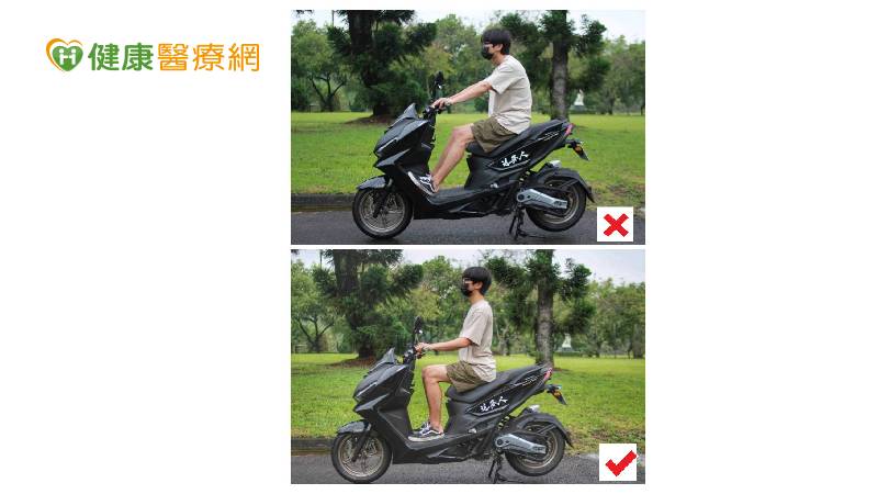 衛福部南投醫院復健科周建文主任指出,在騎乘機車時因雙手需緊握龍頭,身體呈現在坐姿彎腰前傾的姿勢,這在腰椎椎間盤所承受的壓力數值當中,是屬於最大值的壓力值,高達185%。而騎車時在路上難免會遇到大大小小的顛坡,面對這樣彈跳的瞬間衝擊力,在不正確的姿勢之下會讓脊椎再承受額外的傷害,可能會造成腰椎退化或是椎間盤突出等問題。