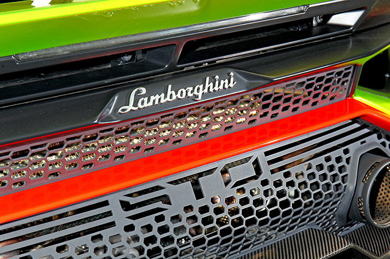 LDVI車身動態整合與後輪轉向系統,讓Huracan STO擁有又快又穩又靈活的表現。 為了突顯Huracan STO道路版賽車身分,在外觀方面配置更張狂及更具侵略性的空力套件和三段可調尾翼,除營造戰鬥氣勢同時也降低風阻並大幅提升車尾下壓力與整體空力效益。不僅如此Huracan STO亦採用將前箱蓋與前保險桿相連的葉子板整合的碳纖維一體式車頭,及外觀鈑件使用超過75%碳纖維材質,使其有效大幅降低車重至1,339公斤,相較於Huracan EVO減輕車重多達83公斤。