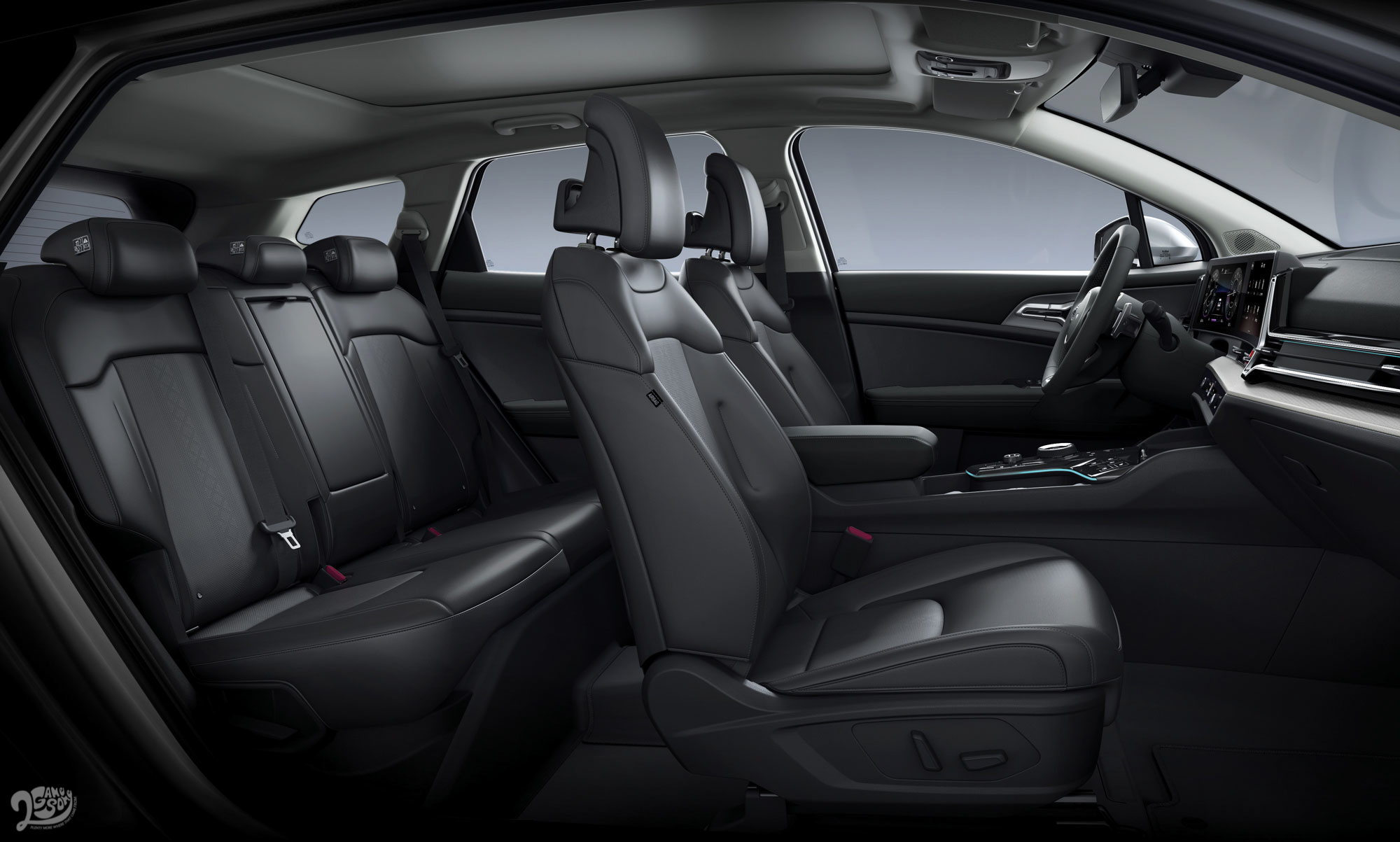 全新 Sportage 車身尺碼全長 4,660mm,軸距達 2,755mm,第二排座椅放倒下,更擁有最高達 1,872L 的行李箱空間。全新 Sportage 同時搭載多項配備,包含全新懸掛式椅背設計、雙前座通風加熱座椅、後排加熱座椅、可 14 段調整角度的後座椅背以及 Harman/Kardon® 音響系統。此外,並搭載一鍵切換數位控制面板,Qi 手機無線充電功能等多項便利科技。