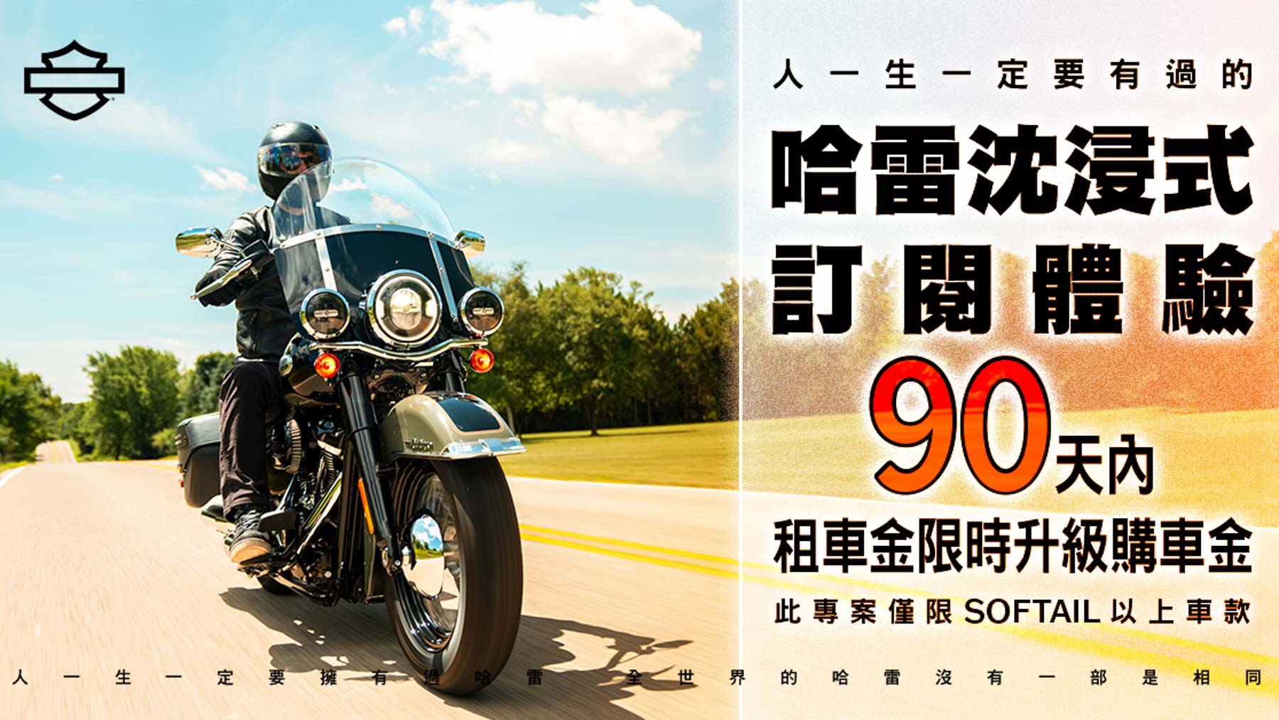 Harley-Davidson 台灣總代理太古鼎翰宣布推出業界首創沉浸式訂閱體驗專案,即日起提供全車系短期租賃服務。重機愛好者不僅將有機會感受哈雷各式車款的多元騎乘體驗,於 90 天內購車更可享受租車金升級購車金的超值優惠。