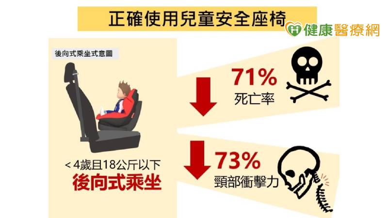 【健康醫療網/記者曾正豪報導】疫情期間家長大多會避免帶幼童到人多擁擠的地方,但若要開車外出時,不要忘記4歲以下幼童要乘坐兒童安全座椅的規定。根據研究指出,兒童使用安全座椅,在遇到行車狀況可降低兒童頸部73%衝擊力、減少71%死亡率,後向乘坐的安全性則提高75%!