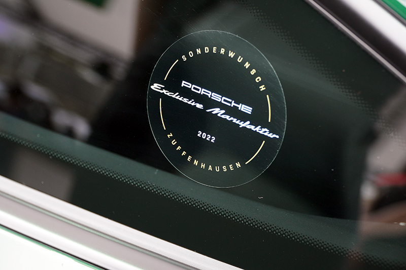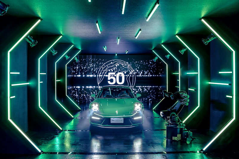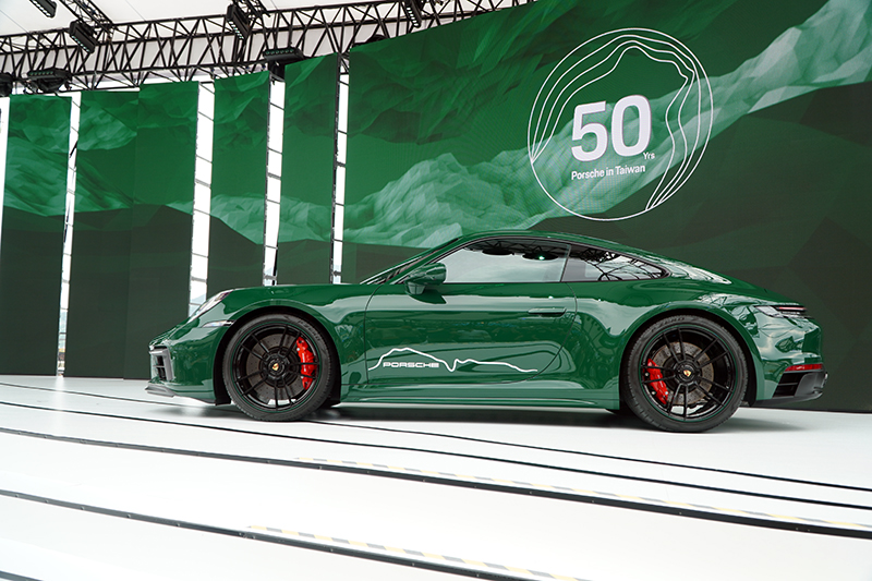 豪森 Exclusive Manufaktur 專家們的通力合作之下,台灣保時捷打造出這款專為此一別具意義的時刻而生的911 Carrera GTS保時捷在臺 50 周年獨步紀念款,以許多獨特的外觀設計與內裝細節來紀念保時捷來台50年的長遠時光,層峰綠的車身塗裝象徵披覆台灣的亞熱帶山林,同時以更現代的方式,紀念1972年首部由官方代理商引進,身披鬣蜥綠塗裝的保時捷 911 E。