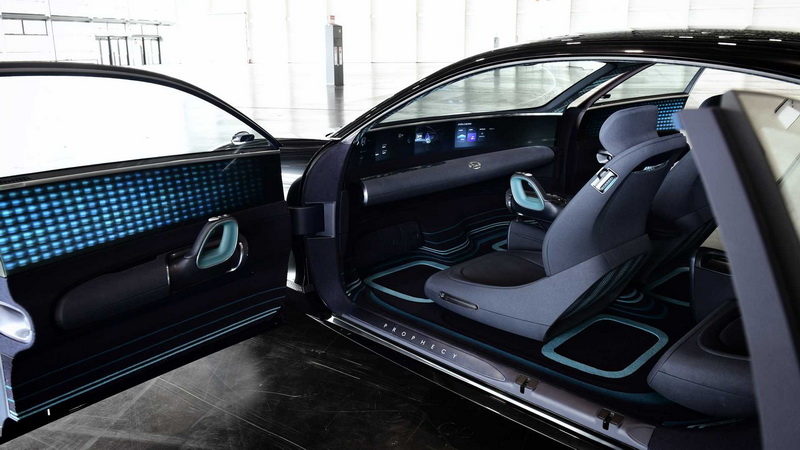 Hyundai Ioniq 6的造型設計可從Prophecy概念車的樣貌窺知,低趴的車頭曲線結合圓潤流線的車身輪廓,整體看起來真的就像預告中所強調的橢圓形結構,不過為了讓量產車更符合現實的使用需求,底盤高度變得更高且車室空間也有所調整,因而必須重新設計微調外型以致發表時間向後遞延,雖然影片中仍未揭露實車的外觀樣貌,不過概念車上的許多元素仍會被沿用,例如大量的點陣式LED燈組、大尺寸數位儀表控台、懸浮式中央扶手設計等有望應用在量產車上。