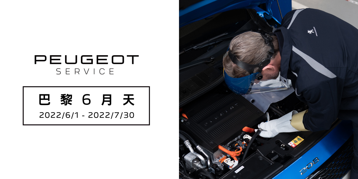 2022 PEUGEOT巴黎6月天冷氣健診服務活動自即日起展開抗暑大作戰,提供免費冷氣健診服務及6月天夏季專屬零件優惠,當次單筆消費發票金額滿NT$8,888元即可獲得2022年獨家設計款 - 法系經典車車野餐墊乙份,數量有限送完為止,活動只到2022年7月30日止。為節省您的寶貴時間,歡迎多加利用授權服務廠預約專線,事先安排服務時間,活動詳情請參閱www.peugeot.com.tw網站及PEUGEOT全台經銷商授權服務廠。
